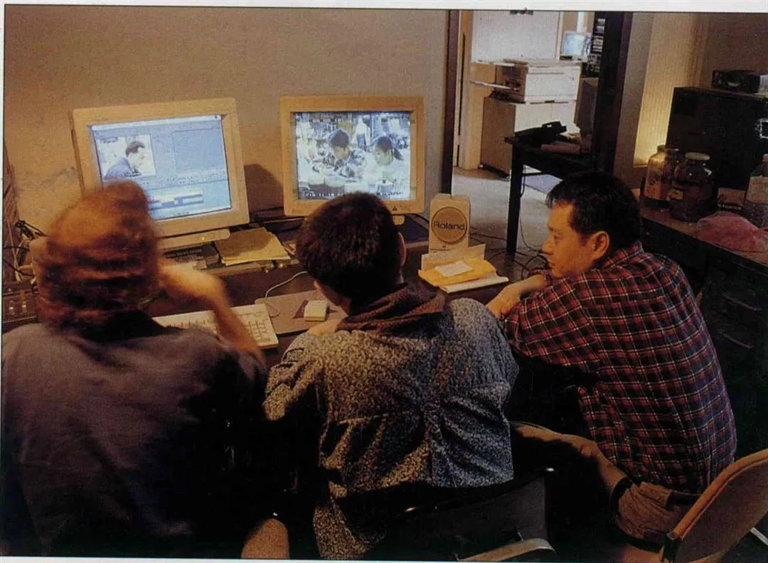 李安與工作人員,正在紐約如火如荼地進行<飲食男女>的後期製作。(古金堂攝)