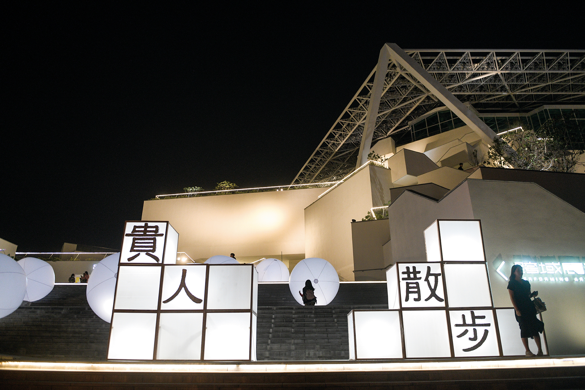 去(2020)年貴人散步的舞台,分布在台南美術館二館、南美里活動中心、全美戲院、吳園藝術中心與B.B.Art,相距最遠的兩棟建築,走路只要十分鐘。音樂節期間,常看到戴著入場手環的樂迷,穿梭在中西區的街道上,有些正在「趕場」,有些正趁著空檔享用台南小吃。「在路上散步的都是樂團的貴人!」洪維寧笑著說,這就是貴人散步名字的由來。