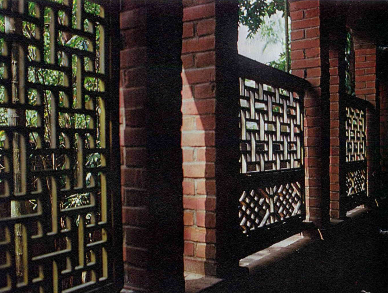 圖1:這列「檻窗」以磚砌成,窗櫺圖案上半是回字紋,下半是盤腸紋。(李乾朗/董敏/鐘永和/摩登家庭雜誌/室內裝潢雜誌提供)