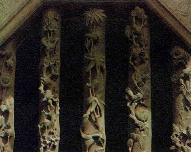 石窗的花樣一般較單調,多屬直條狀,上面可雕花,而且一定是奇數條、偶數洞。因為按照中國傳統有關風水的說法:陽屬奇數,陰屬偶數,而直條是實的,屬陽;洞是虛的,屬陰。