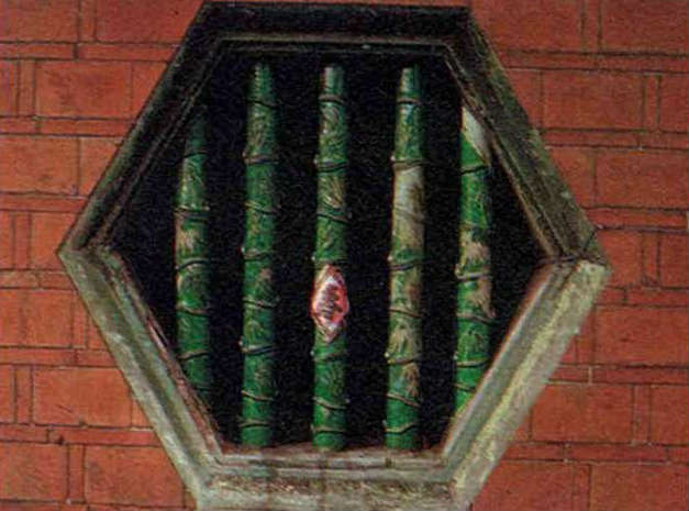 圖1:這面屋牆中間有個直櫺窗,兩邊則嵌著綠色的「琉璃窗。(李乾朗/董敏/鐘永和/摩登家庭雜誌/室內裝潢雜誌提供)