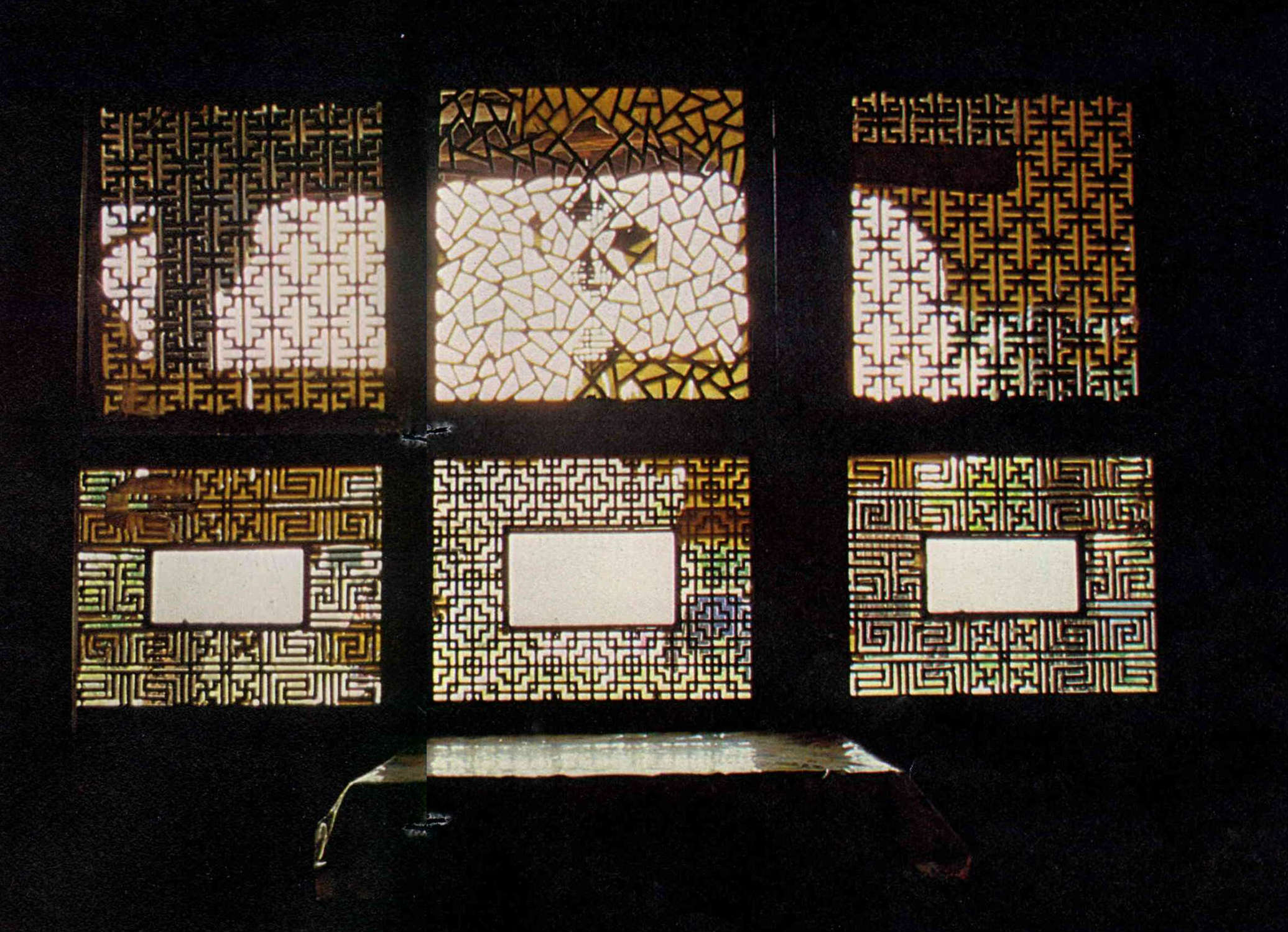 圖1:橫披窗與扇窗上的窗櫺能產生篩光作用,使室內有光線卻不致太亮,且顯得靈透空幽,其雕刻圖案亦能產生美感。(李乾朗/董敏/鐘永和/摩登家庭雜誌/室內裝潢雜誌提供)