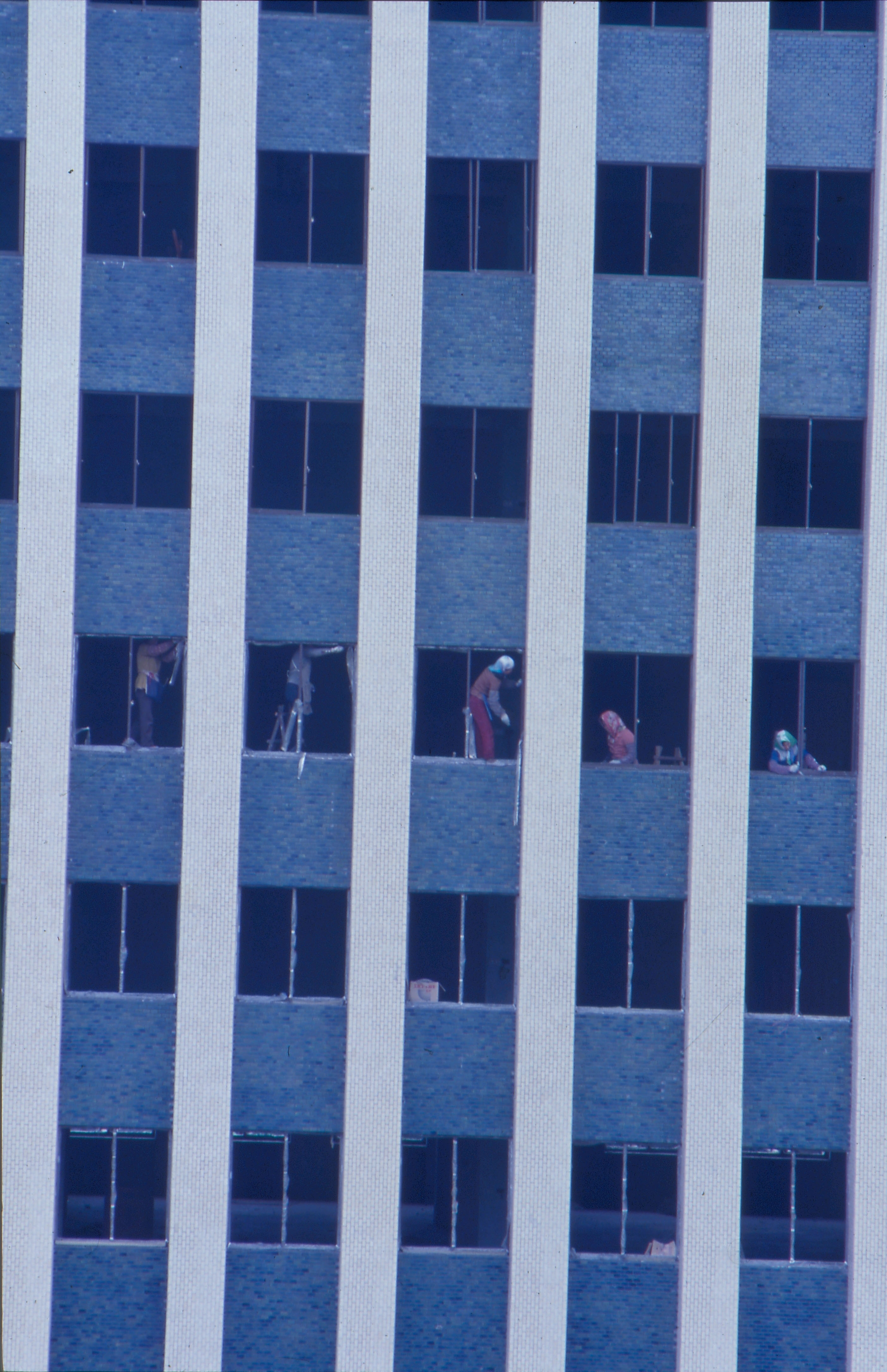 圖4:工人正在為即將落成的新廈裝置鋁窗。市區大樓的窗子平時多緊閉,為隔絕噪音和空氣污染。(李乾朗/董敏/鐘永和/摩登家庭雜誌/室內裝潢雜誌提供)