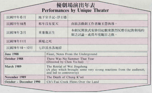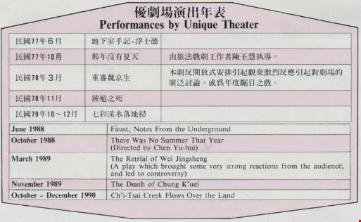 影評人王墨林說得好:「優劇場已經造成了一種文化現象,因為至少他們真正提出了問題;不管你贊成與否,都不能忽略他們的存在。」