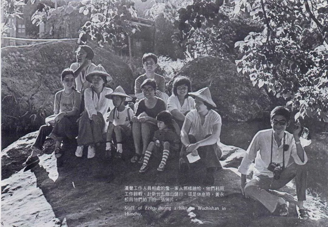 漢聲工作人員相處的像一家人那樣融恰,他們利用工作餘暇,赴新竹五指山健行。這是休息時,黃永松為他們拍下的一張照片。(恆水)