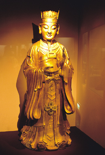另一件充滿傳奇的藏品,則是一尊中國隋朝觀音菩薩像。這尊瘦長菩薩上身比例特別長,樸拙貼身的彩帶、衣摺線條,加上曼妙的身材、精細的髮紋與瓔珞垂飾,交織出菩薩的慈悲與尊貴。