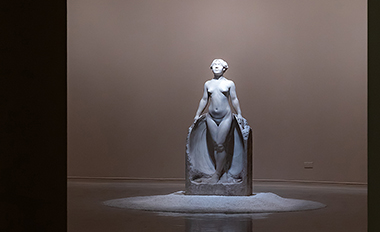 陳協建讓漆作不只是基礎裝潢,而能結合藝術創作,營造空間氛圍。圖為陳協建受建設公司邀請,以玉山為靈感的創作。(磐興建設提供)