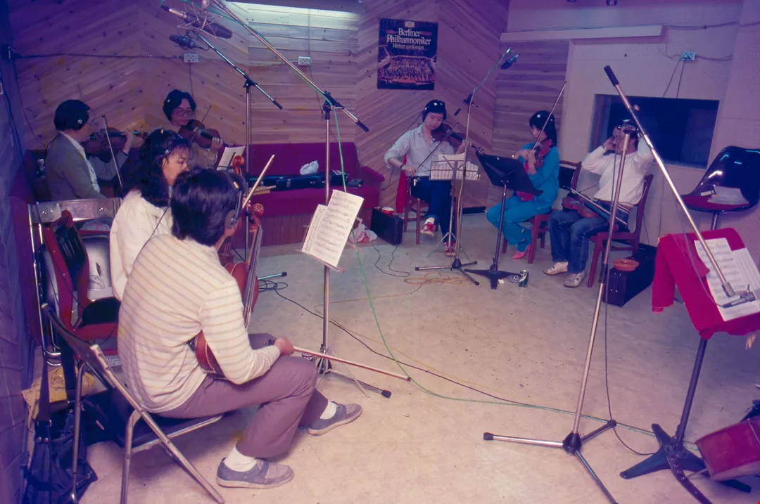 圖2:小提琴手在錄音間為唱片錄製配樂。(鄭元慶)