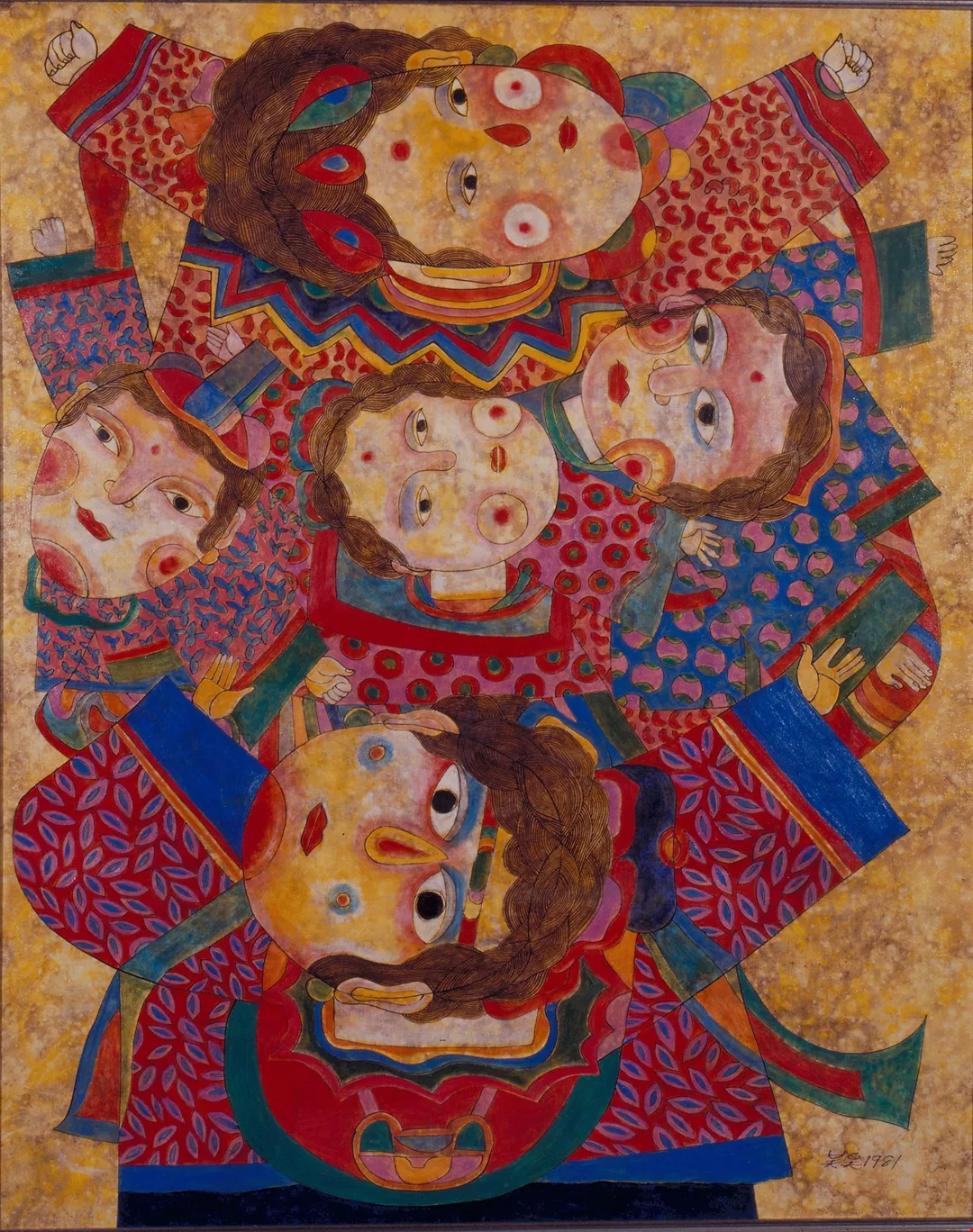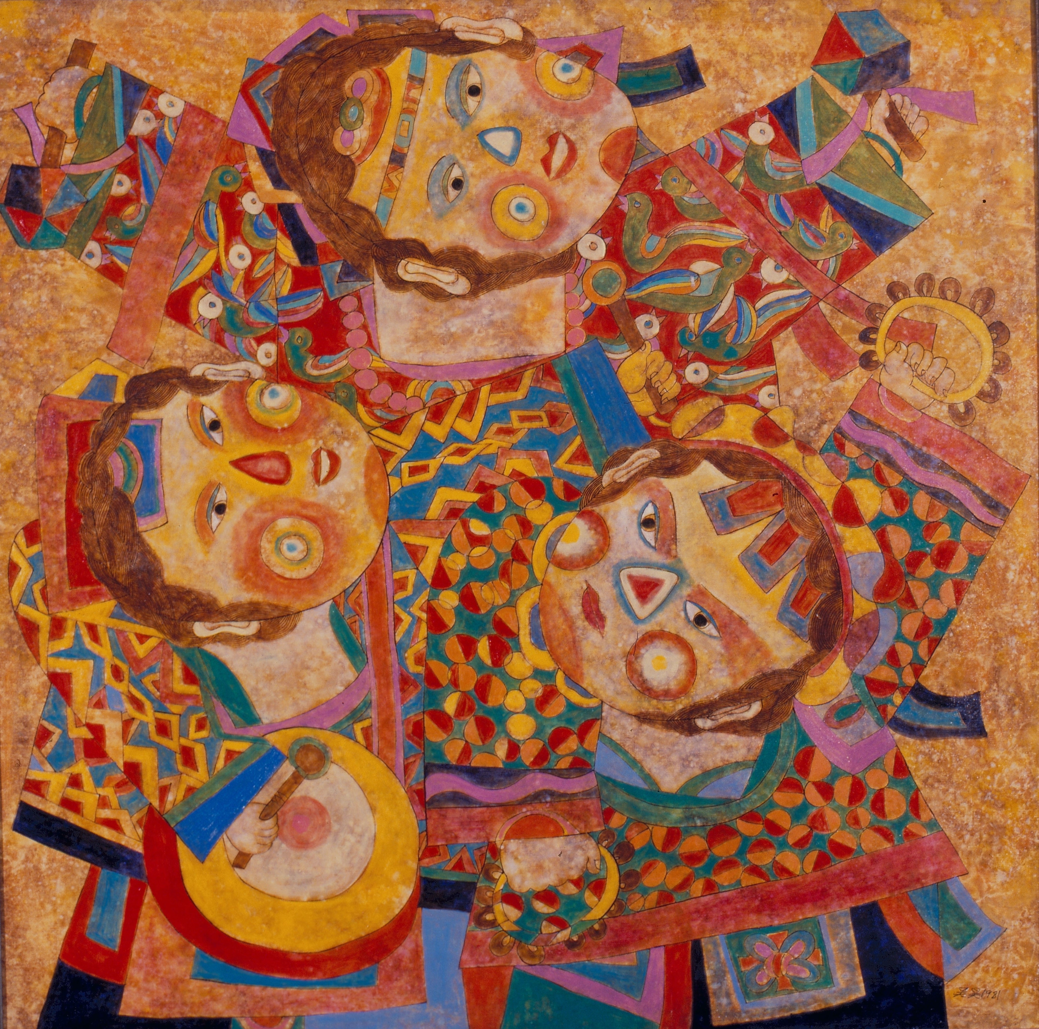 今天和吳昊談起過去的種種不幸,他搖搖頭說:「那也是沒辦法的事啊!」圓而略凸的眼睛,掠著一抹無奈的情緒,使我們想起他筆下一些賣藝人的造型。吳昊對於民間藝術感覺相當敏銳。傳統藝人的所作所為漸為現代社會遺忘,然而藝人對生活的感觸,代代皆同。吳昊用一種純樸的態度將他們的血肉重現,那些具有充分裝飾趣味的安排,一眼就識得是東方的品質。