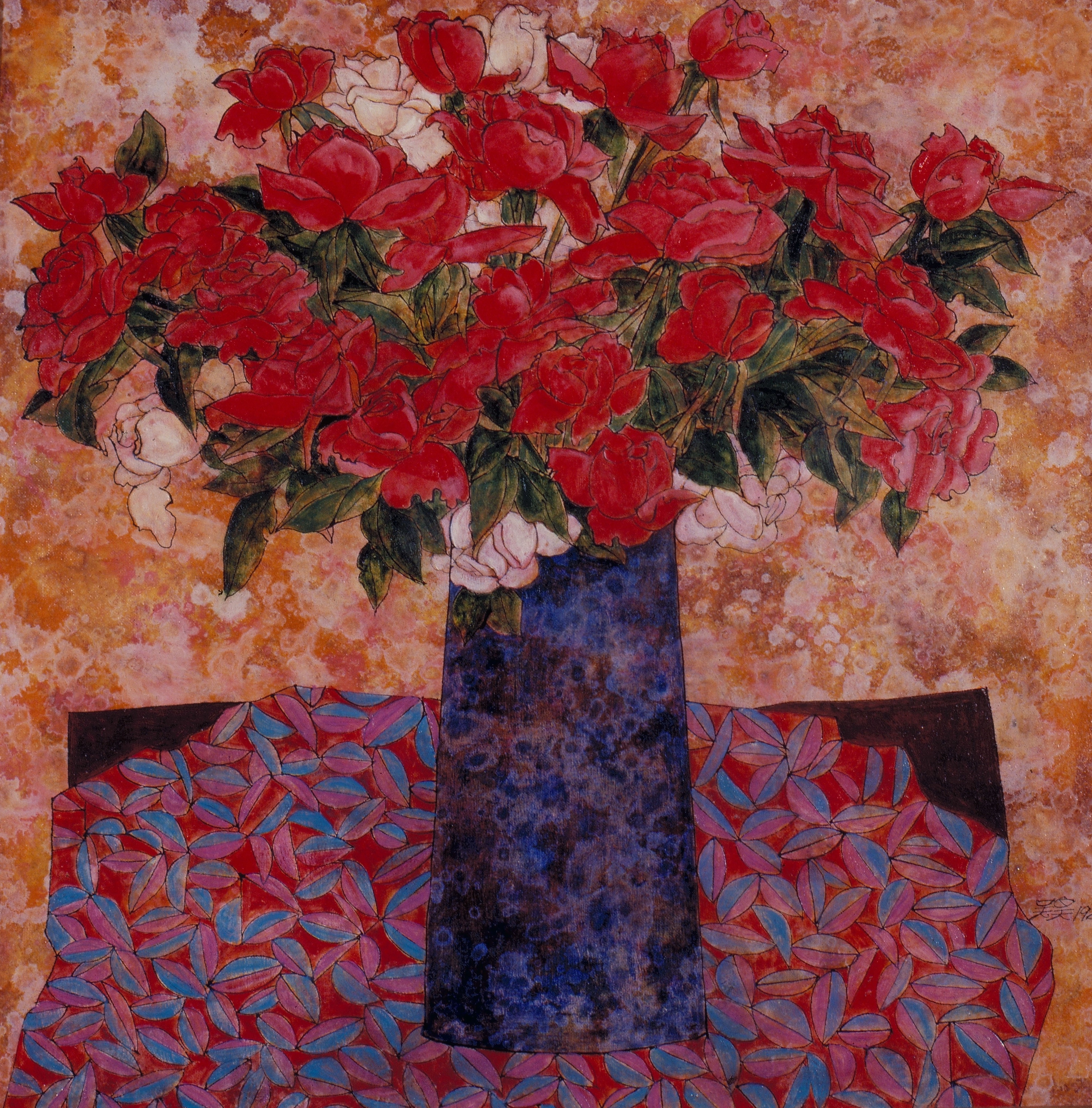 吳昊的民間藝術題材,最近走向更精緻的路線:背景添加處理,色彩愈見華麗。人物經放大,趣味性更強。他的花畫也有個人的特殊風格。多年來的作畫經驗,他極少利用現場寫生,事實上民間藝術也不可能回到他童少時的模樣。但是畫花的時候,他先用毛筆勾成雛型,著色時必須和真花相對,才能稱心下手。觀眾眼中的「瓣瓣有情」,卻不知畫者耗費多少夜晚、換了多少次鮮花,才得以捕捉那一份神韻!