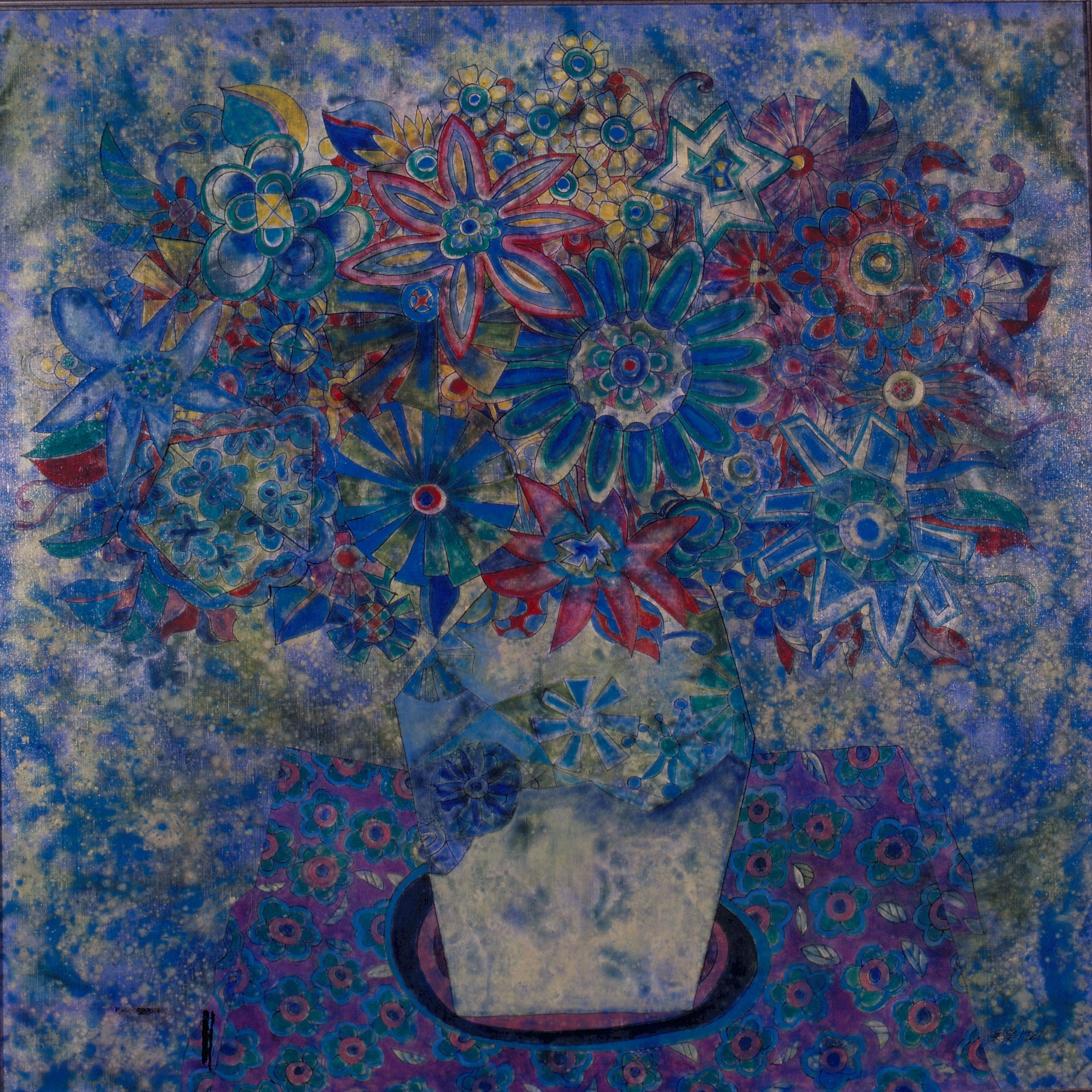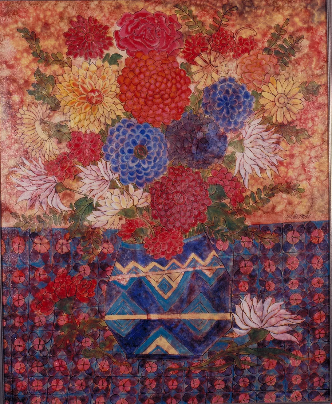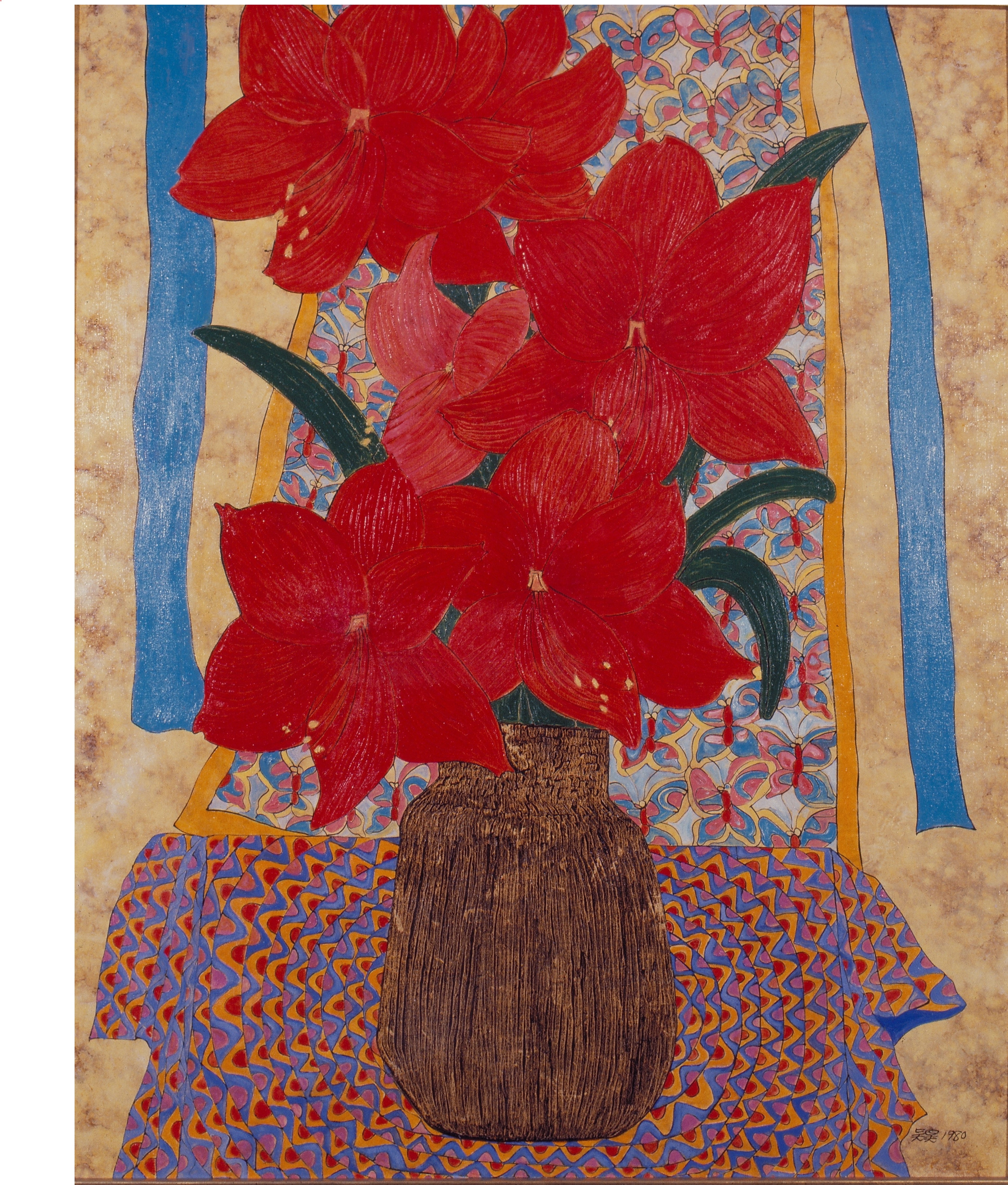 大約五六年前,吳昊也曾嘗試民間藝術以外的若干題材,像繁麗的盆花、克難街住家鄰近環境的房舍,以及來自童年記憶的風箏、玩物等。民國五十九年左右,他以空軍上尉的官階退伍,並不意味著做一位職業畫者的開始。家庭對於像他這樣有責任心的男人來說,比繪畫更先考慮。他也忖度著兩對子女將來的教育問題。