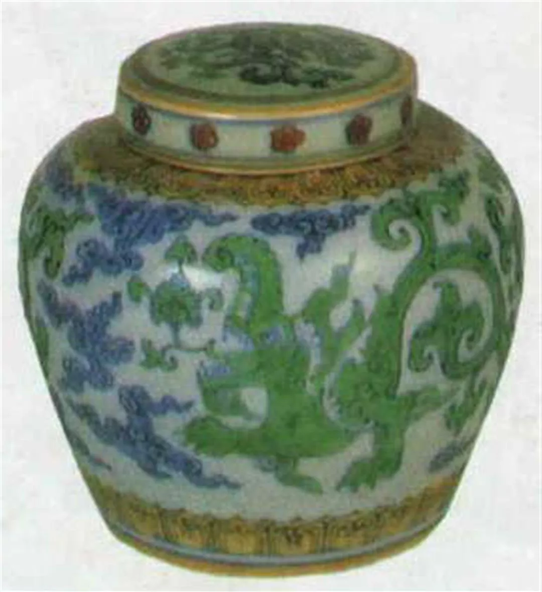 (成化時期,天字款鬥彩夔龍蓋罐)(故宮博物院提供)