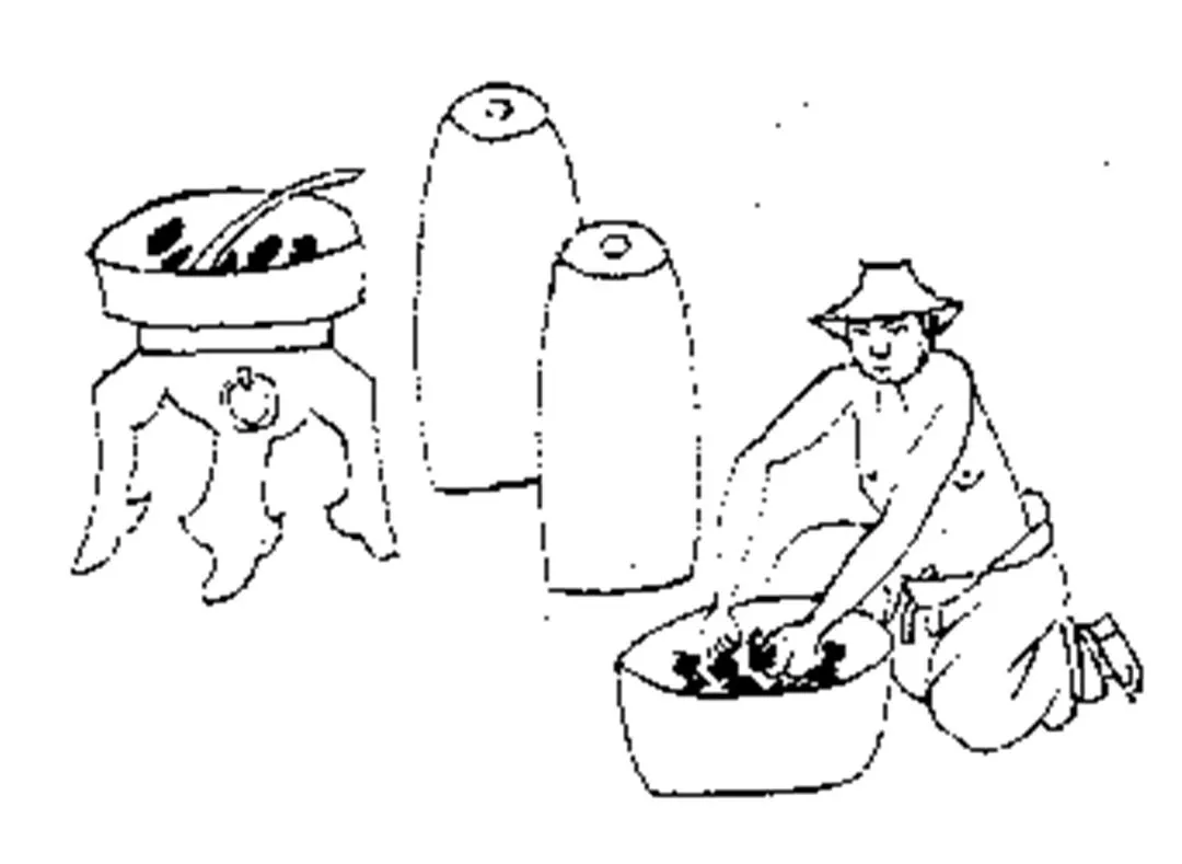 取煤、去雜、配料、舂搗、合墨......,古書《墨譜》上圖繪歷歷,可以想見製墨藝術的源遠流長。