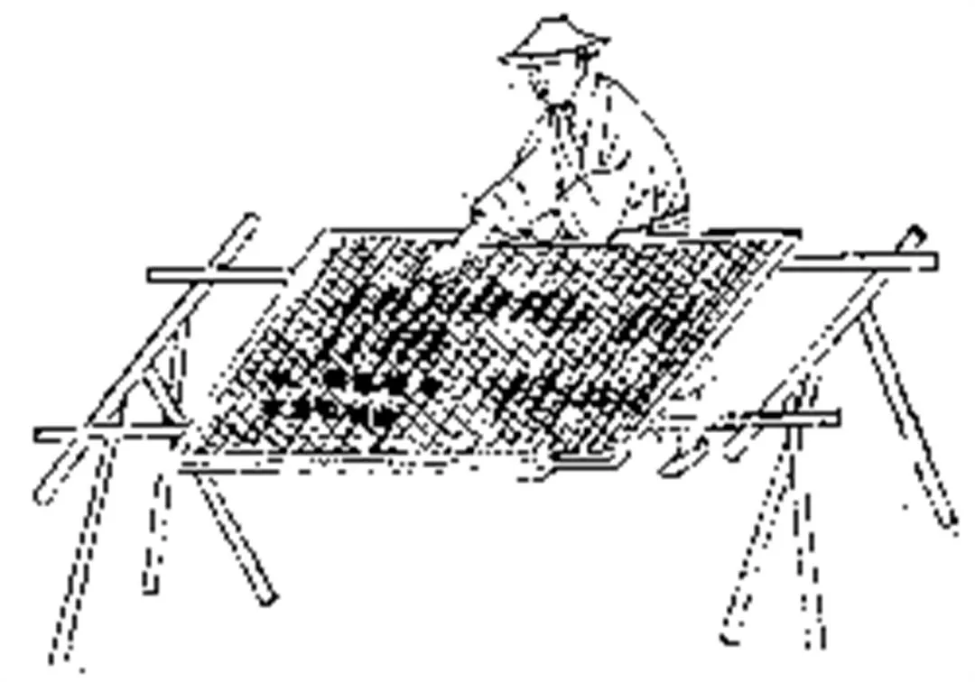 墨條套入模具後,再用長板凳製成的壓軋椅,以身體的重量將模型中的墨塊壓成型。隔天,等墨塊冷卻後將模型解開,取下墨條修邊,然後陰乾廿五天左右,「自然原料的墨條不像化學合成品,必須慢慢陰乾,不能曬太陽也不能吹風,這樣墨質的凝固結合才會緊密,確保最佳品質。」