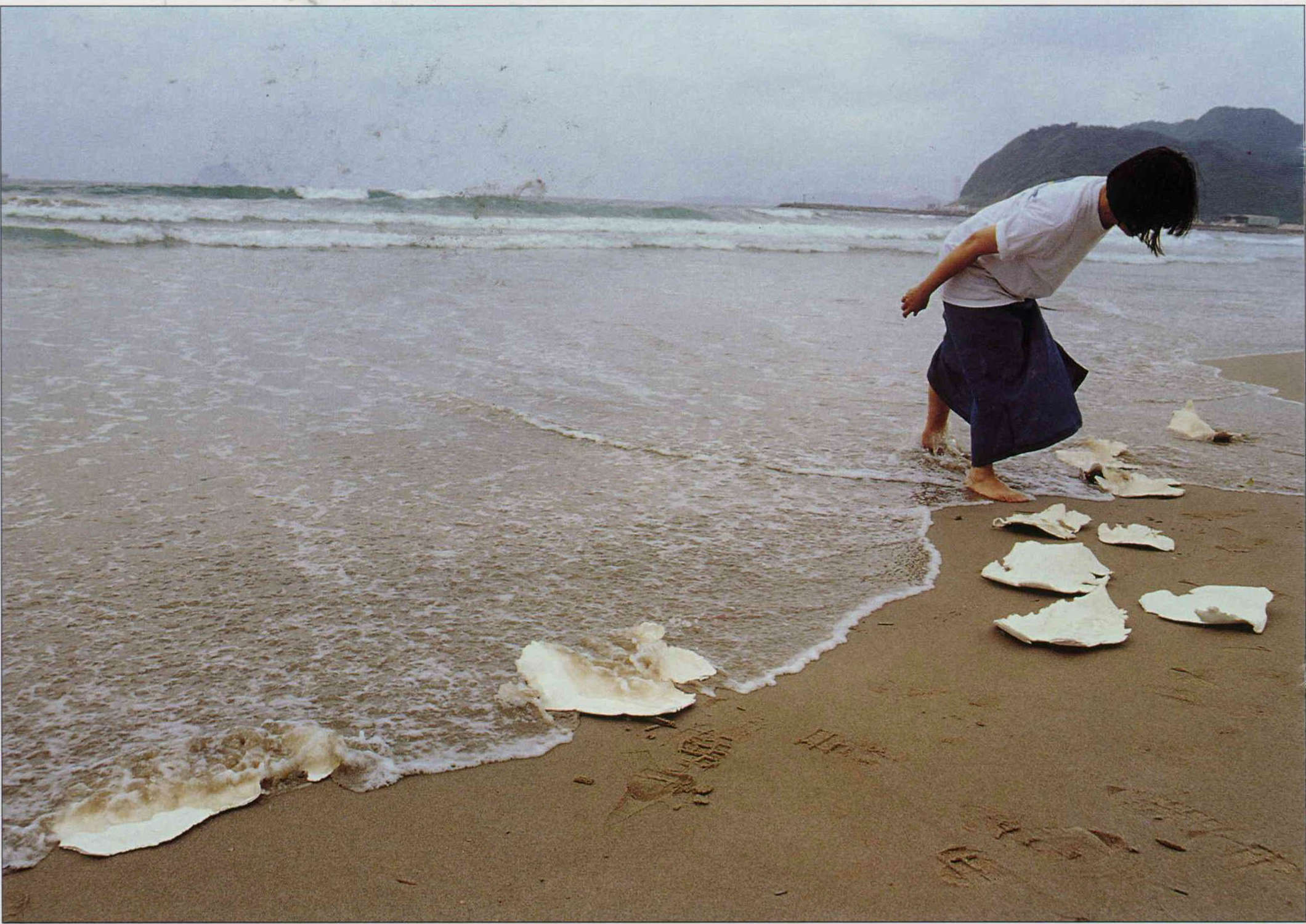 工作室在台北翡翠灣海灘的蕭麗虹,搬出一片片的「雲」,這些雲是她以「刀削麵」功夫做出來的。