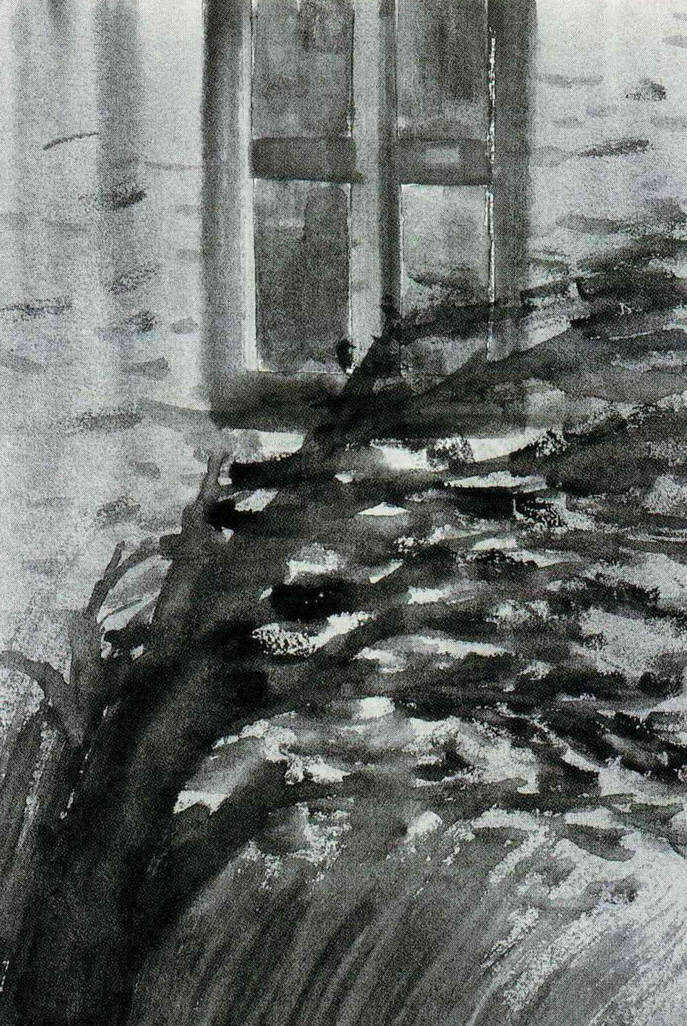 我一直不曾察覺海灘上有這麼個人。他竟然以為我朝他呼喊;而理直氣壯地在我的廳堂坐立。然而,事實證明,年輕畫家的出現,也不是毫無道理的,尤其在一個充滿悸怖的風雨之夜,捍衛房子的責任,自然而然落到陌生男子的肩上。他全心全意勘察房子可能遇到的危險,他的每一句話,彷彿成就一種力量,除了遵循和依賴,別無其它選擇。在這男子面前,平常我那些極度警覺的自衛本能,竟能瓦解得無聲無色,也許緣自內心深處一股渴求休息的慾望,也許久已蒙塵的信賴和坦然,只有在這樣一個不斷變化而充滿毀滅的時刻,才能夠掙破一切,單純地在兩個陌生人之間,自由顯現,是的,事情必定如此,否則,也就無法解釋後來我竟會答應那年輕畫家的另一個請求。