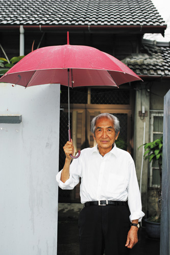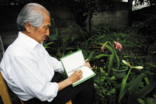 日式老宅庭院裡的禽鳥與花草,都是老先生作畫的題材。