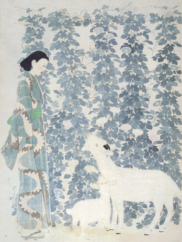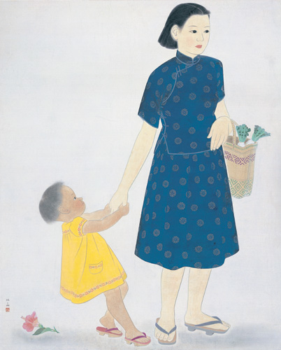 這幅以未婚妻為主角融入構圖內的《朝涼》,1940年入選日本「奉祝展」。