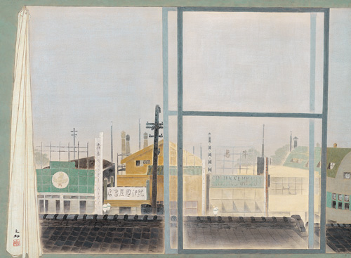 在帝國美術學校就讀期間,他的畫作大多取材自生活中熟悉的場景。1937年的《新宿所見》,作畫地「中村屋」是當時新宿的知名餐館,由於樓層較高,可從二樓俯視新宿街景;隔年的《黃昏》,日式住家中庭是他租屋處的鄰居,此作曾入選第二屆新興美術院展。