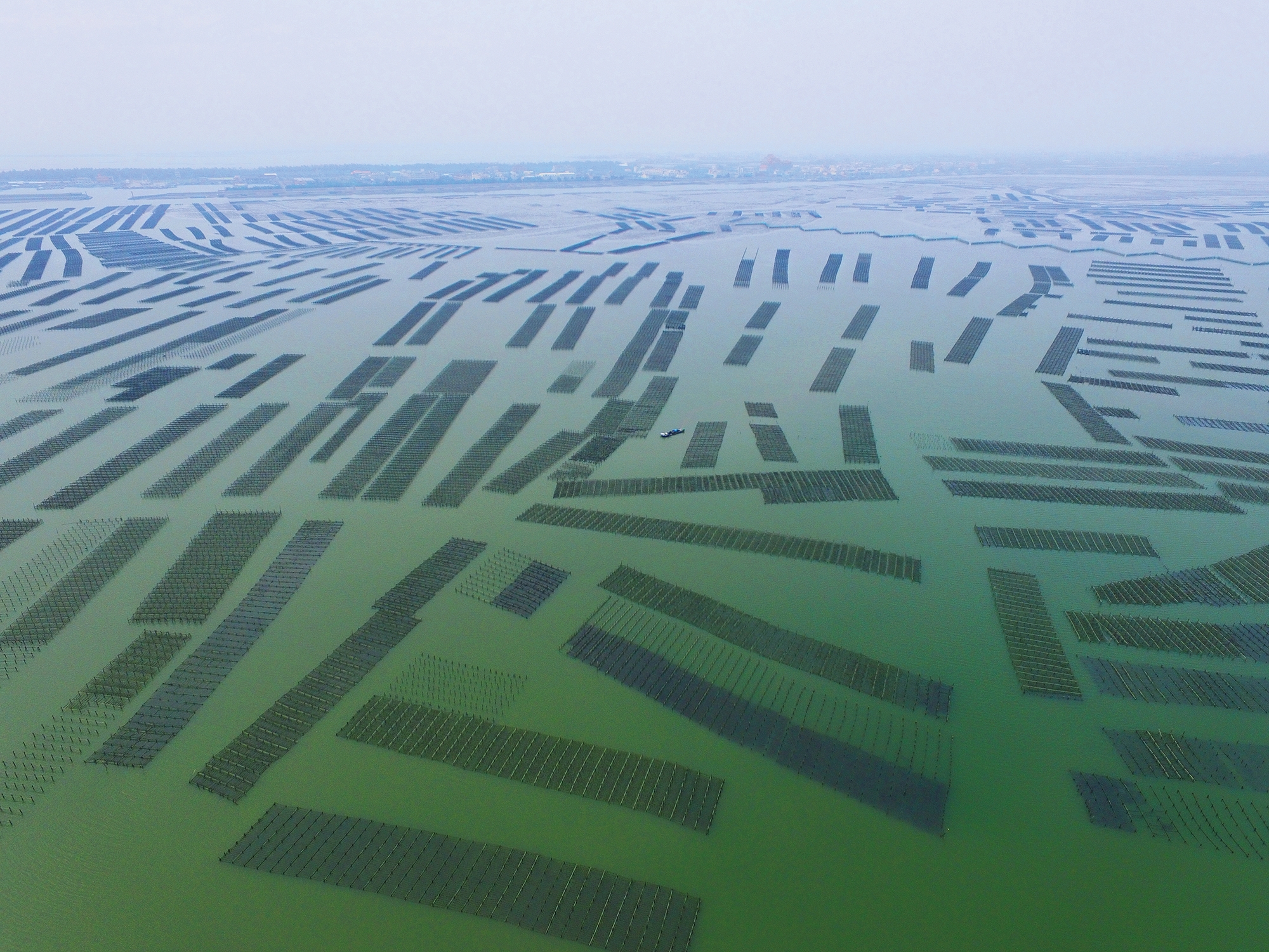 目前嘉義的牡蠣養殖海域分為46個養殖區,平掛式有750公頃,浮掛式有一萬棚。在蚵田可見許多用竹子綁成的蚵棚,每組蚵棚插上竹竿,竿頂有不同的旗幟或標誌,這可是各家蚵棚的「門牌」,這樣蚵農才不會跑錯棚。