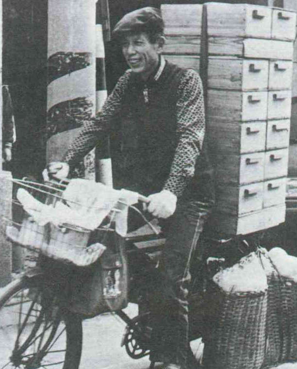 右圖:大眾包飯中心以腳踏車送飯。(張良綱)