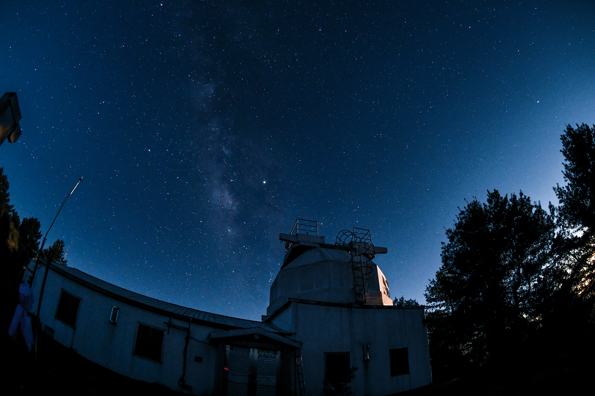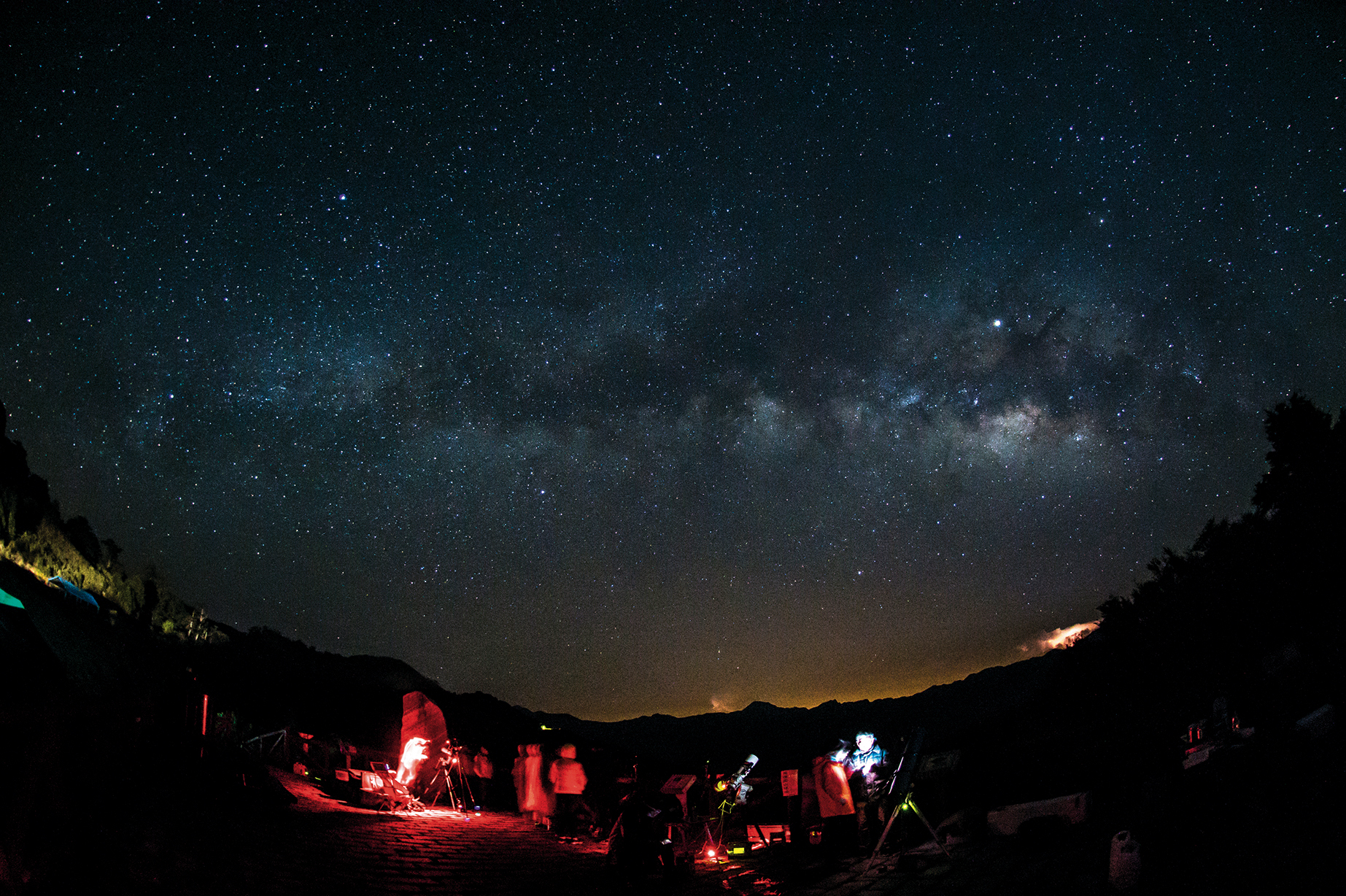 合歡山區擁有絕佳的觀星條件,但仍難避免來自城市的光害(圖左下黃光處)。
