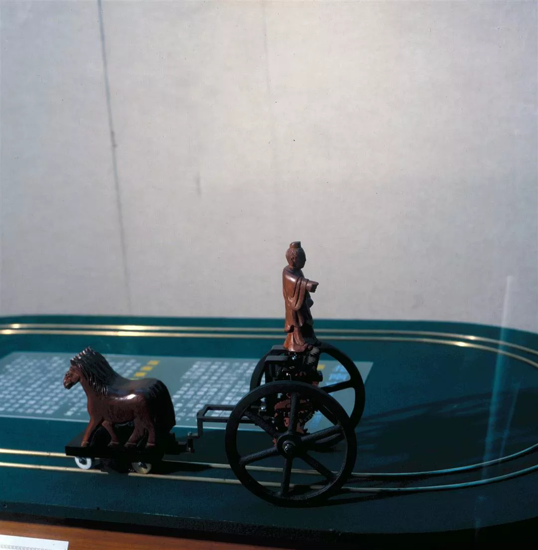 在二、三十項的展示品中,「指南車」是我腔最早的重要科技發明。它是利用齒輪傳動原理來辨別方向,構思精巧,相傳是黃帝首創。