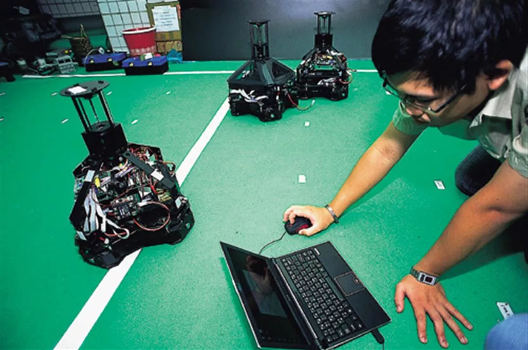 6月,美國舊金山,由台灣淡江大學設計的輪型機器人正和韓國隊較勁腿上功夫,淡江的機器人在上下半場10分鐘內踢進了12球,韓國隊則掛零到底。