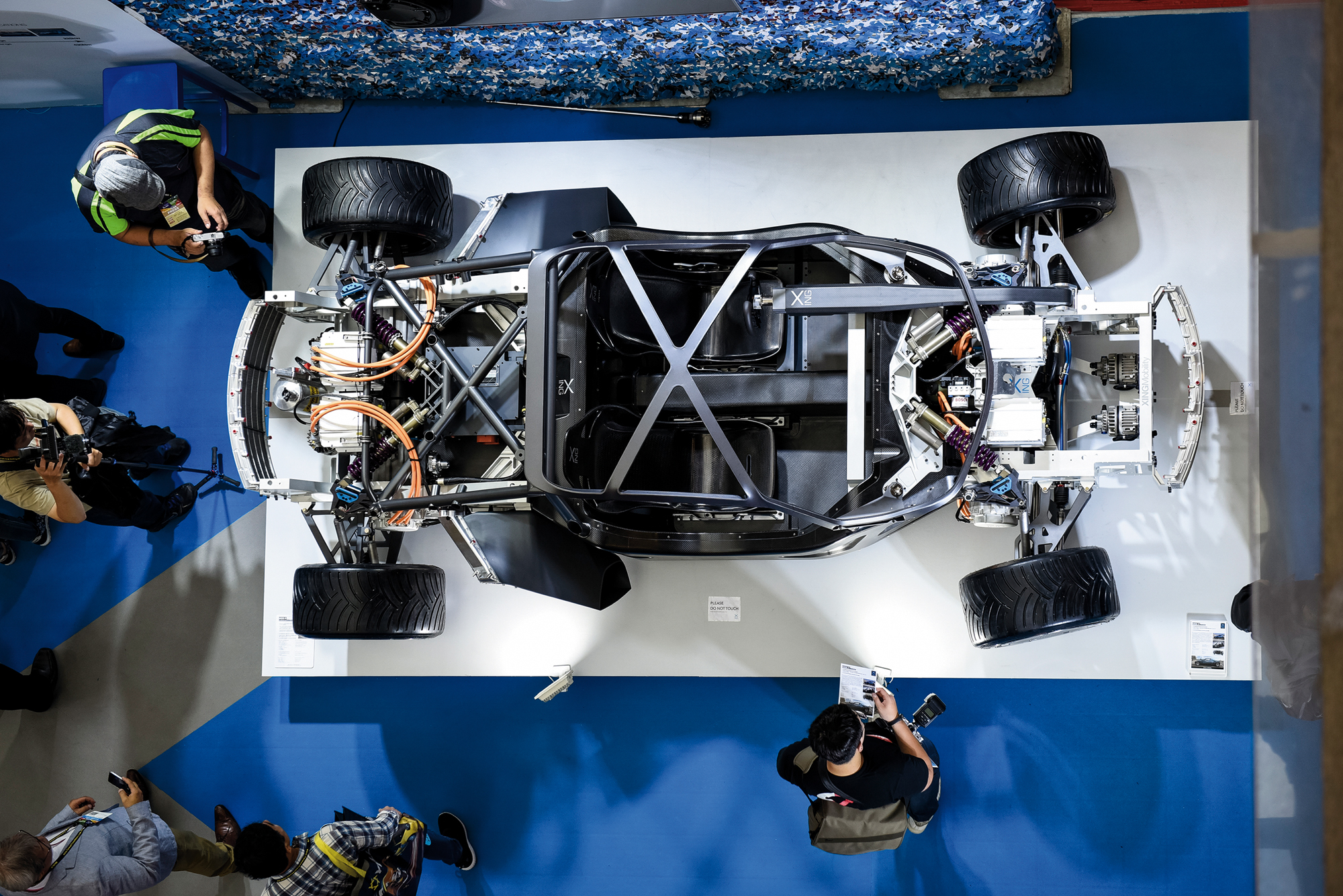 並且,不是選用一個個規矩的書法字體,而是張力十足,又合乎現代審美的墨跡線條,就在電超跑上飛躍了起來!洪裕鈞說:「Xing,就是『行』的羅馬拼音,是不斷在運轉的意思。書法基本上也是一種ing的紀錄,就是Xing的表現。」