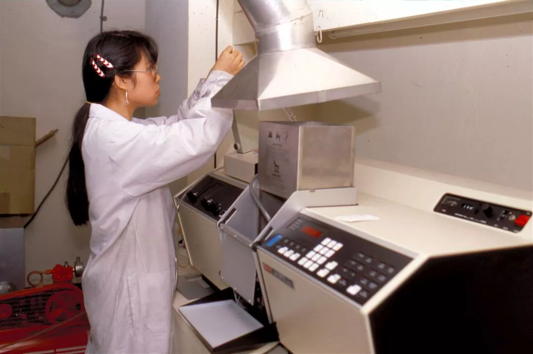 下)百萬元的檢驗重金屬儀器一進安全檢驗中心,立即忙碌起來。(張良綱)