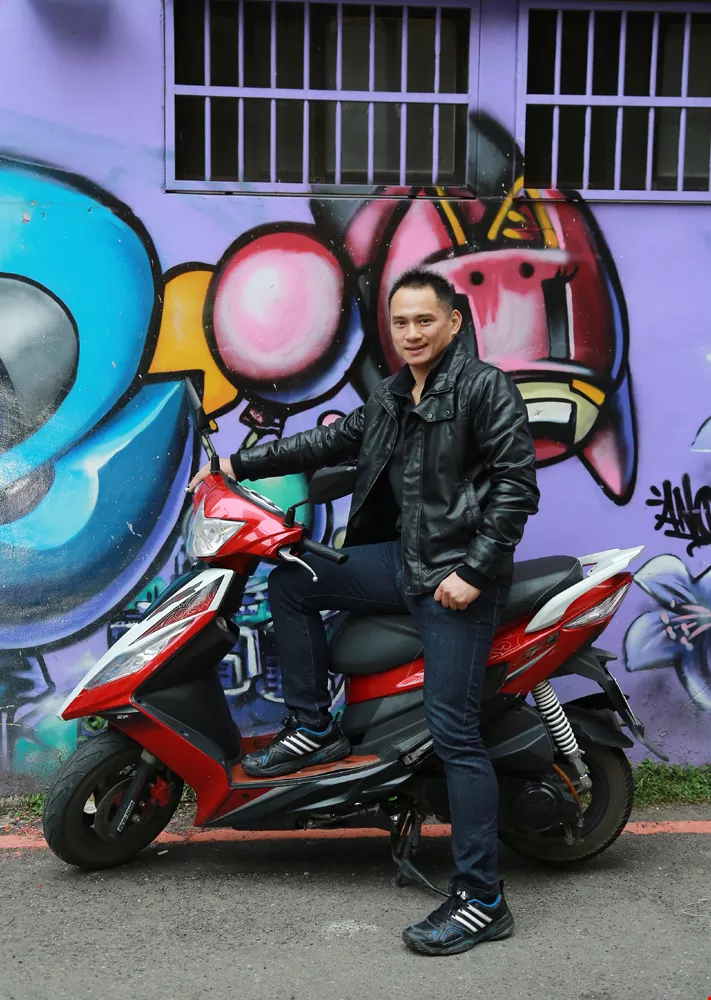 今年38歲的詹勇財(Falco),以機車環島來響應勵馨社會福利事業基金會「十億人站出來,初五來跳舞」的反暴力活動。