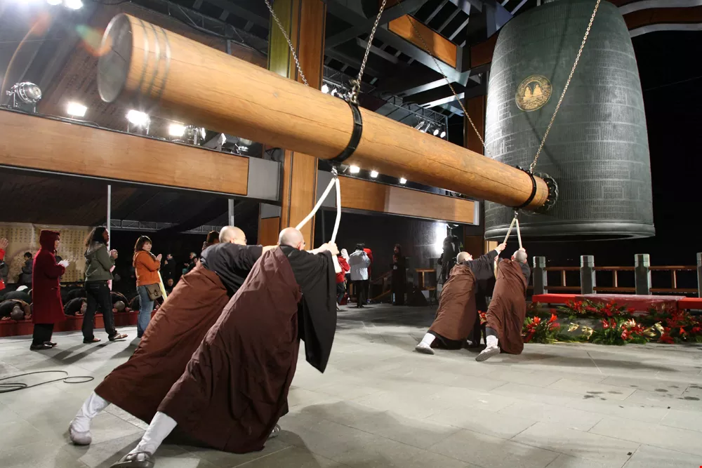 法鼓山在除夕撞鐘祈福,願為信眾撞開俗世無明煩惱,撞出人生智慧。