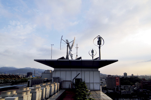 無論是古樸的淡水老街、國道一號桃園路段,或竹圍及淡水國小、台科大、清華大學等校園裡,都可以發現小型風力發電機的曼妙身影。