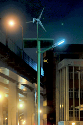 清大「風光綠能團隊」所研發的垂直軸風光互補型路燈。