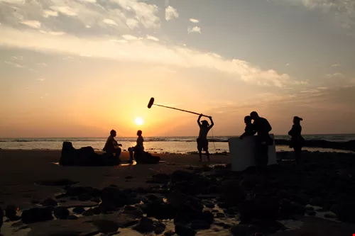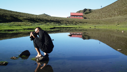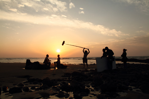 電影《賽德克‧巴萊》攝影師江申豐,一肩扛攝影機,一邊扛鋤頭,努力重現螢火蟲飛舞田間的兒時記憶。圖為江申豐赴苗栗拍攝電影《幸福三角地》的工作場景。