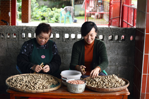 梁郁倫跟著婆婆從剝殼、翻炒花生一路學起。隨著業績提升,她找上鄰近6戶平均六、七十歲的長者幫忙剝殼,並和9戶農戶契作,種植「台9號」花生品種。