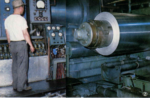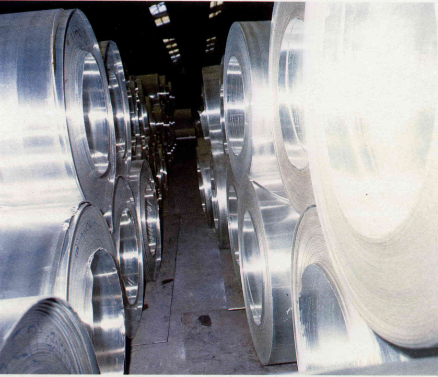 軋壓好的鋁片,捲成圓筒,再送到另一台冷軋機去擠壓,成為更薄的鋁片。這裡完成的鋁片,可以按照客戶要求的規格切割,另一部分則送到軋箔廠。