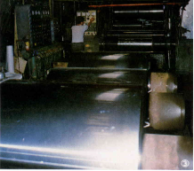 台鋁的軋片廠是一個佔地達三千多坪的大廠房,最先映入眼簾的是熱軋機,機器碩大無朋,卻只需二個人操作。工人們把電解完成的軋錠送入機器軌道,機器即開始運轉,厚厚的軋錠送至定位後開始軋壓,待出來時就變長變薄了。經過四次軋壓過程後,原來厚厚的像麵包似的軋錠,就變成一塊長長扁扁的燒餅了,銀光閃閃,耀人眼目。