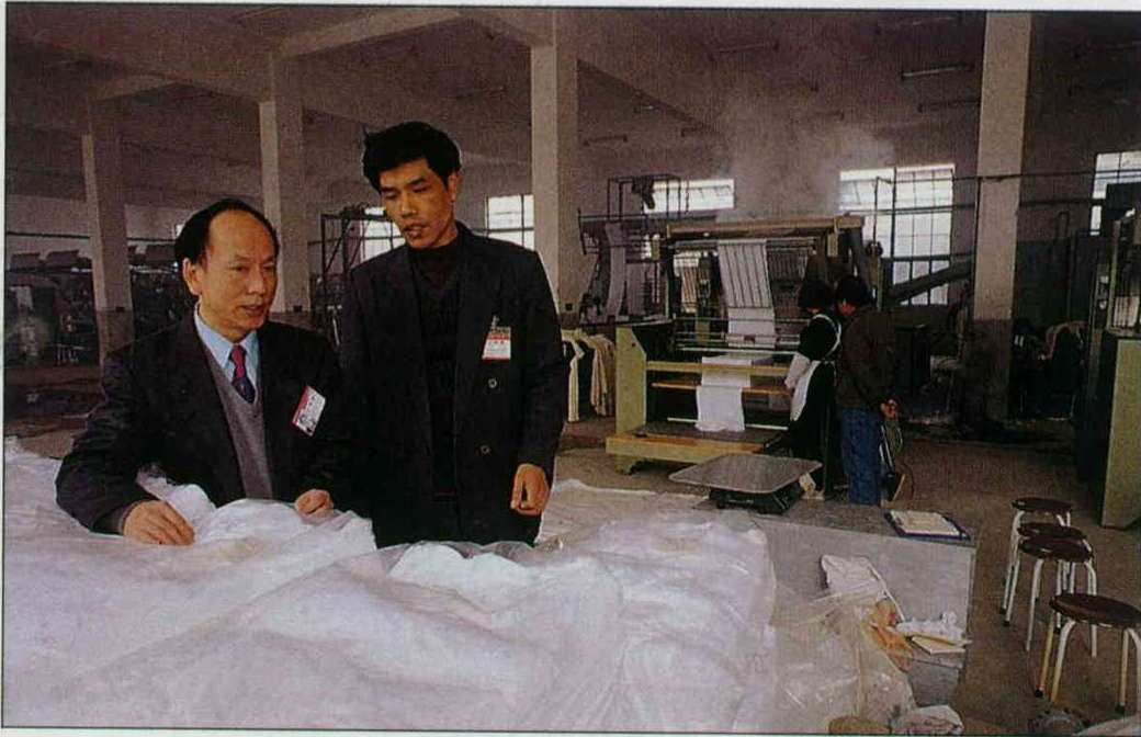 中興紡織公司與大陸合資的三槍牌內衣供不應求,圖為台灣去的總經理許明生(左)和大陸方面推薦的副總蔣瀏瀛(右)。