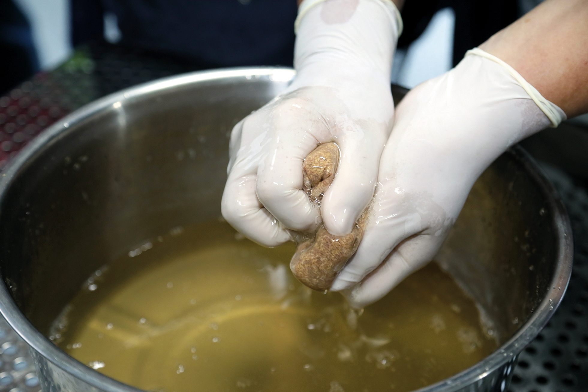 苗改場研究員盧美君指出,通常一顆愛玉子可以搓出約200ml的愛玉凍,但經過生物科技的萃取,可以作成500片面膜或400瓶精華液,CP值很高,目前苗改場正在尋找技術移轉的廠商,若能開發成商品,除了可以促進農民種植愛玉的誘因,最重要的是,這將是台灣獨家的美容產品呢!