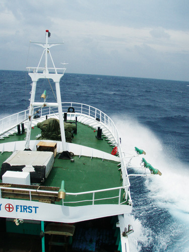 一艘我國籍鮪延繩釣船乘風破浪,出航印度洋。