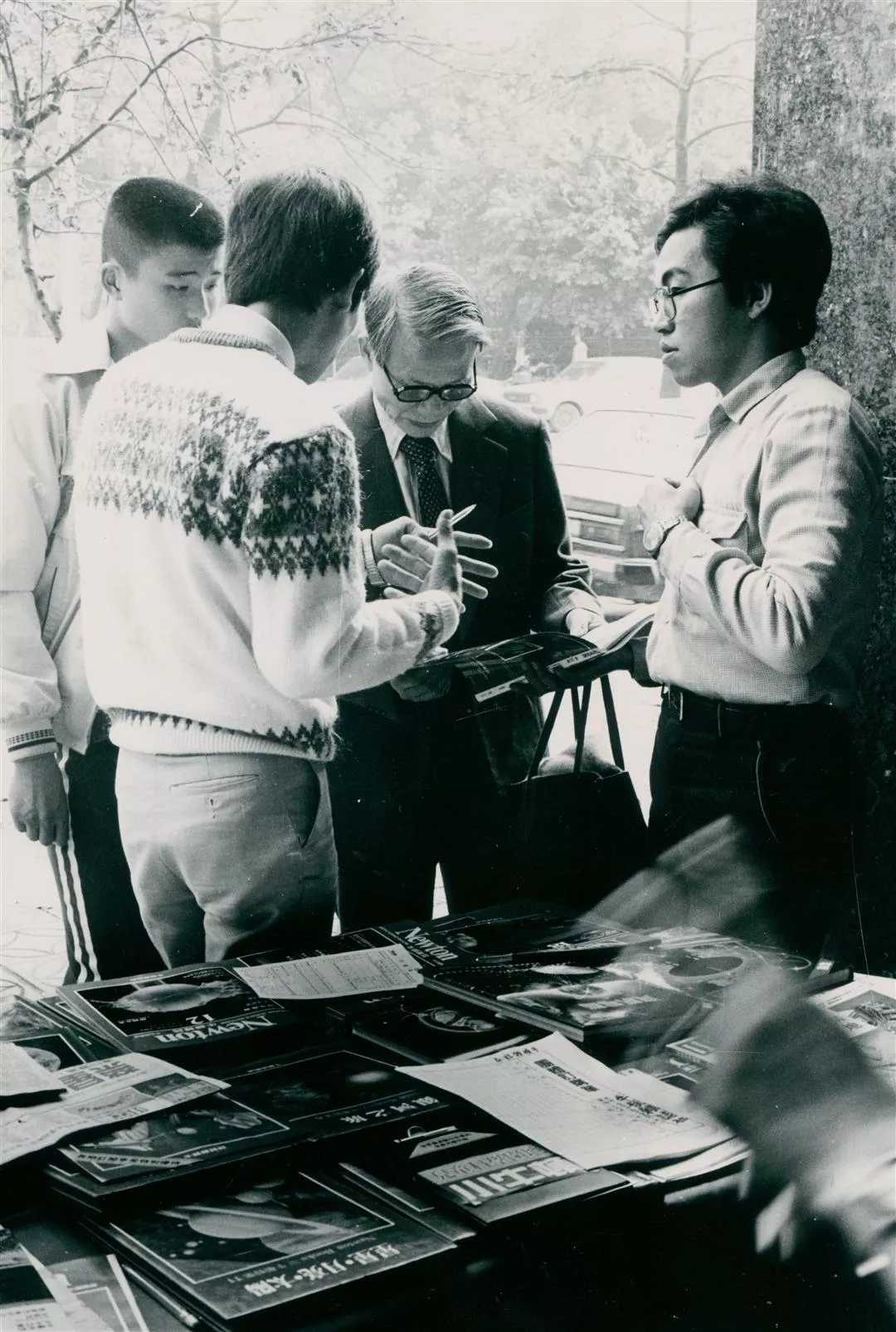 圖2.:「大部頭」套書的推銷員,鼓起如簧之舌向路人推銷。(張良綱)