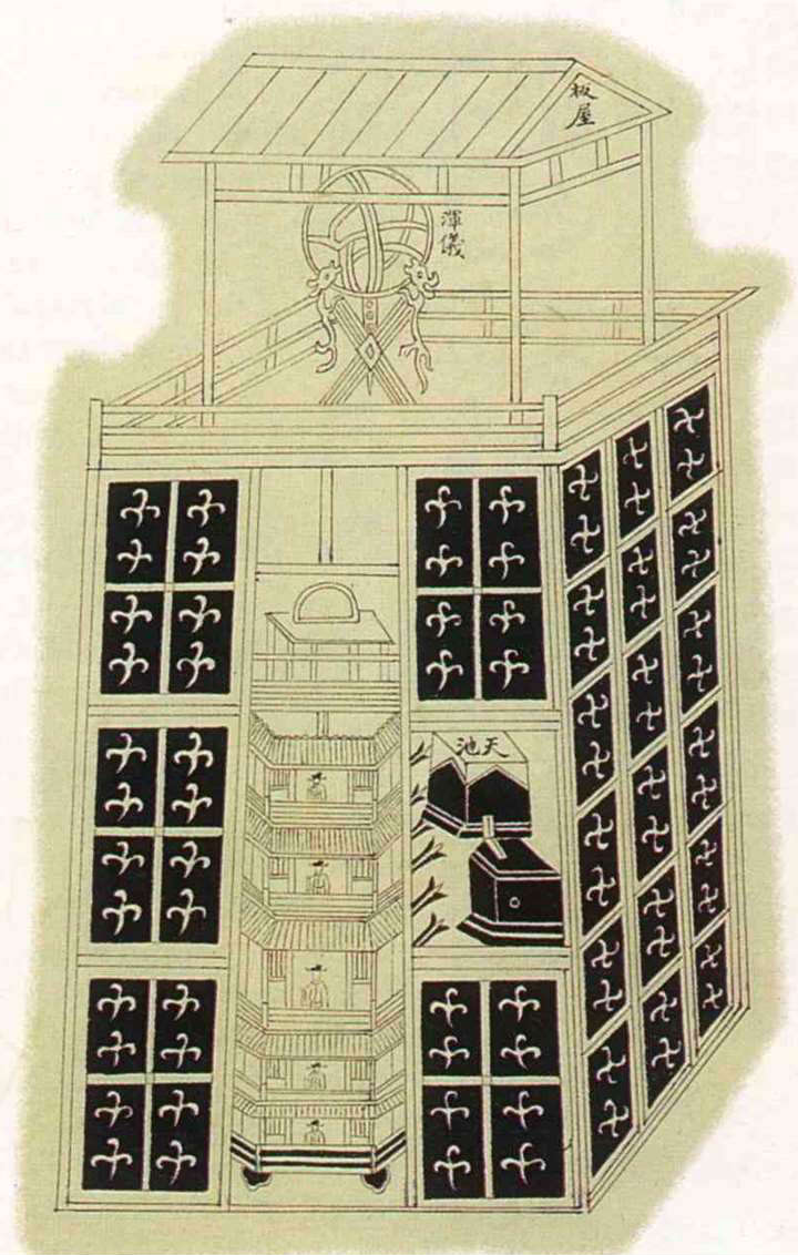 它的主結構共有三層,上層是用來觀測天文的「渾儀」,中層是演示天體運行的「渾象」,下層是報告時辰的「司辰」,全部「貫以一機,激水轉輪,不假人力」。精密的程度,「占候則驗,不差晷刻」。
