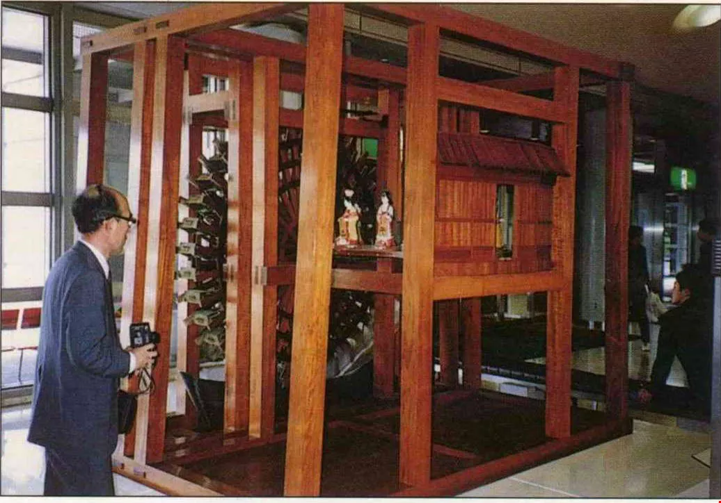 日本的築波博覽會上,出現過水運儀象台樞輪與報時部份,只不過木閣只有一層,而且出來報時的,竟是嬌滴滴的美女。(高振華提供)(高振華提供)