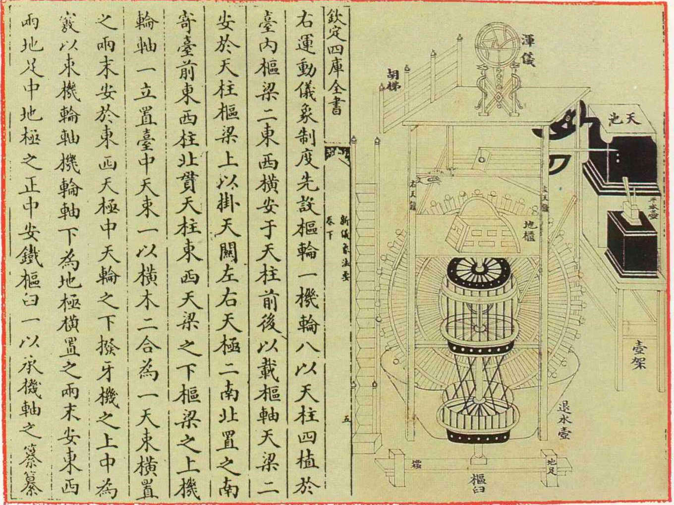 幸而蘇頌在儀象台建成之後,寫了一部《新儀象法要》,以文字和大量的機械圖,記述各構件的形制、材料、尺寸,以及整體的構聯方式。