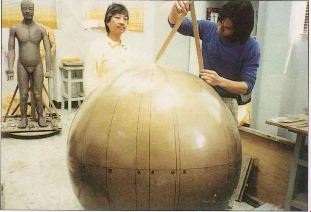 問題是,科博館已經「生米煮成熟飯」了,總不能拆了重蓋吧?那有什麼可以替代呢?一般要仿銅,都是在不飽和聚酯樹脂(FRP)上面噴上金漆,但這樣不夠逼真,而且一段時間就會「脫皮」;為了達到更好的效果,林健成把金屬粉末放在一種耐酸耐鹼、永不氧化的塑鋼中,用手工塑成所需要的形狀,再把表面打亮,看起來外觀就完全像是銅。