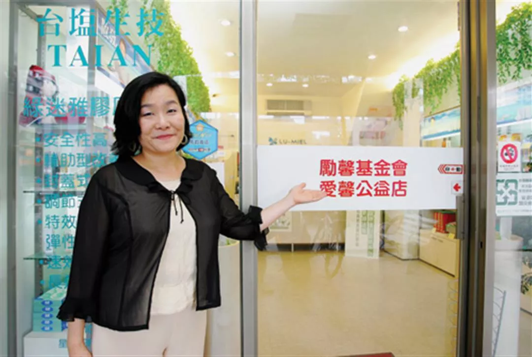 除了門口加註「愛馨公益店」外,勵馨基金會的台鹽加盟店與其他商店別無差異。