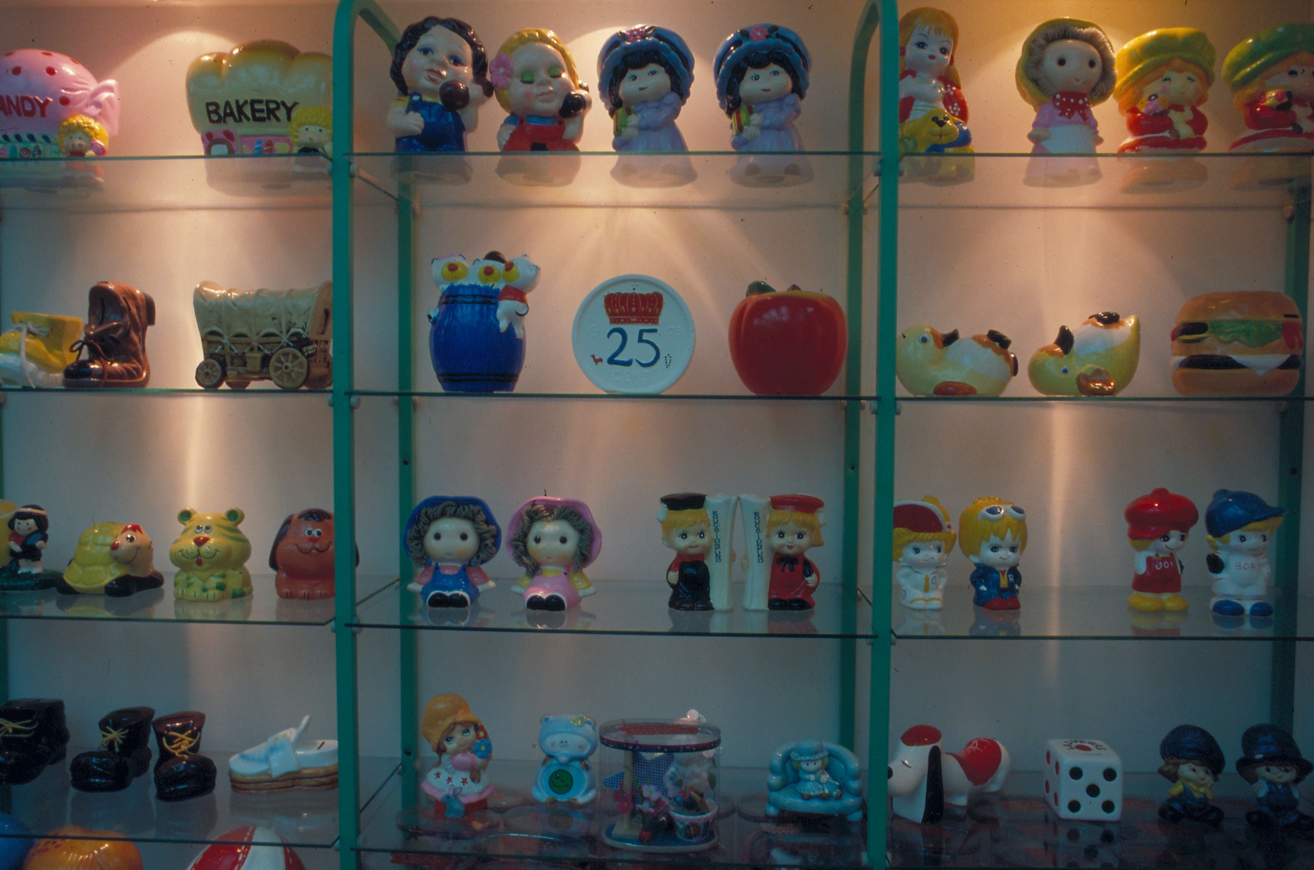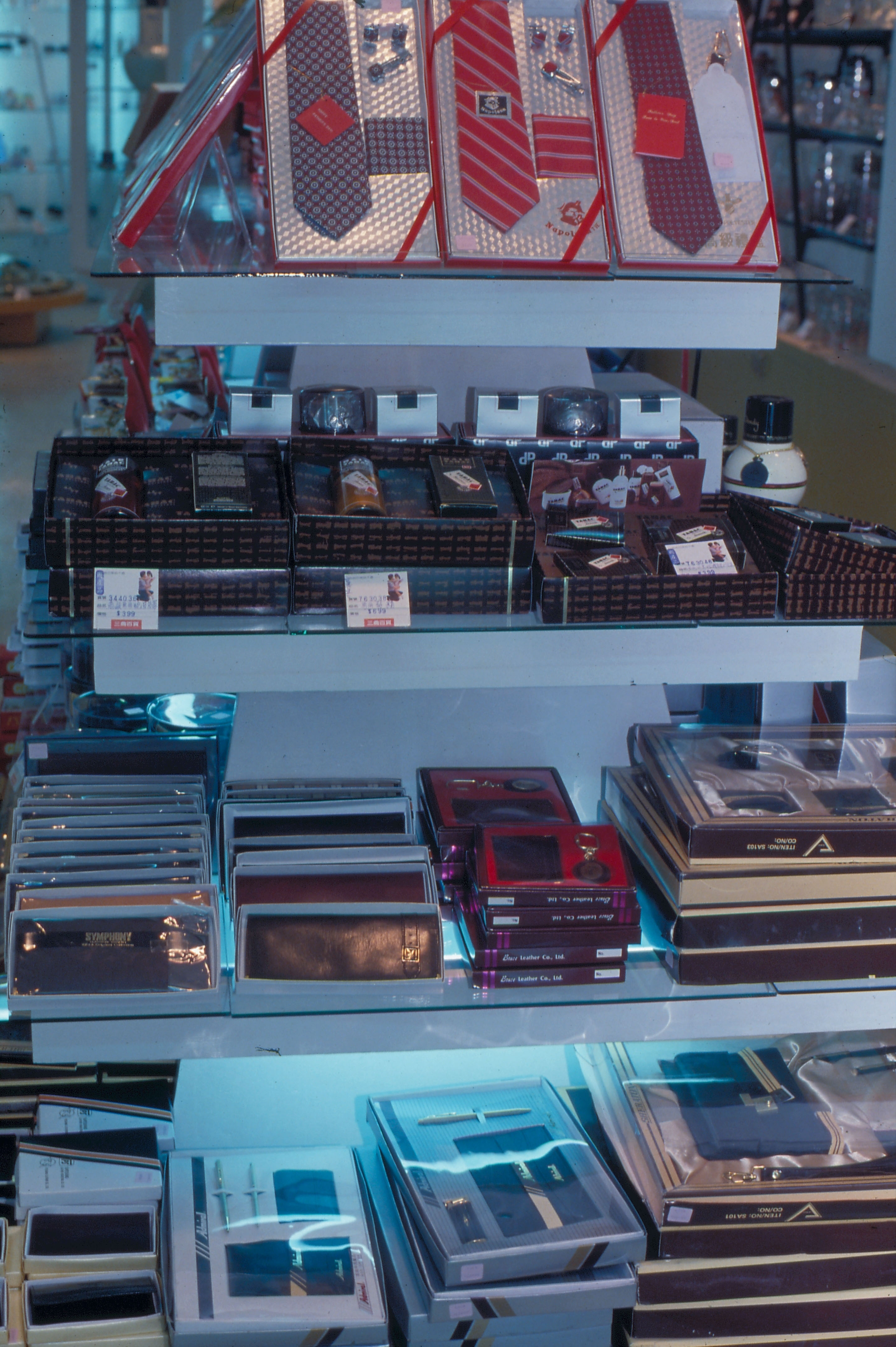 三商門市部的陳列架上,擺滿著可愛的布娃娃、令人愛不釋手的絨毛小動物、顏色光鮮的陶製玩偶、帥氣時髦的女裝、各式各樣精製的玻璃杯組、古雅的時鐘……等,琳琅滿目,令人眼花撩亂。
