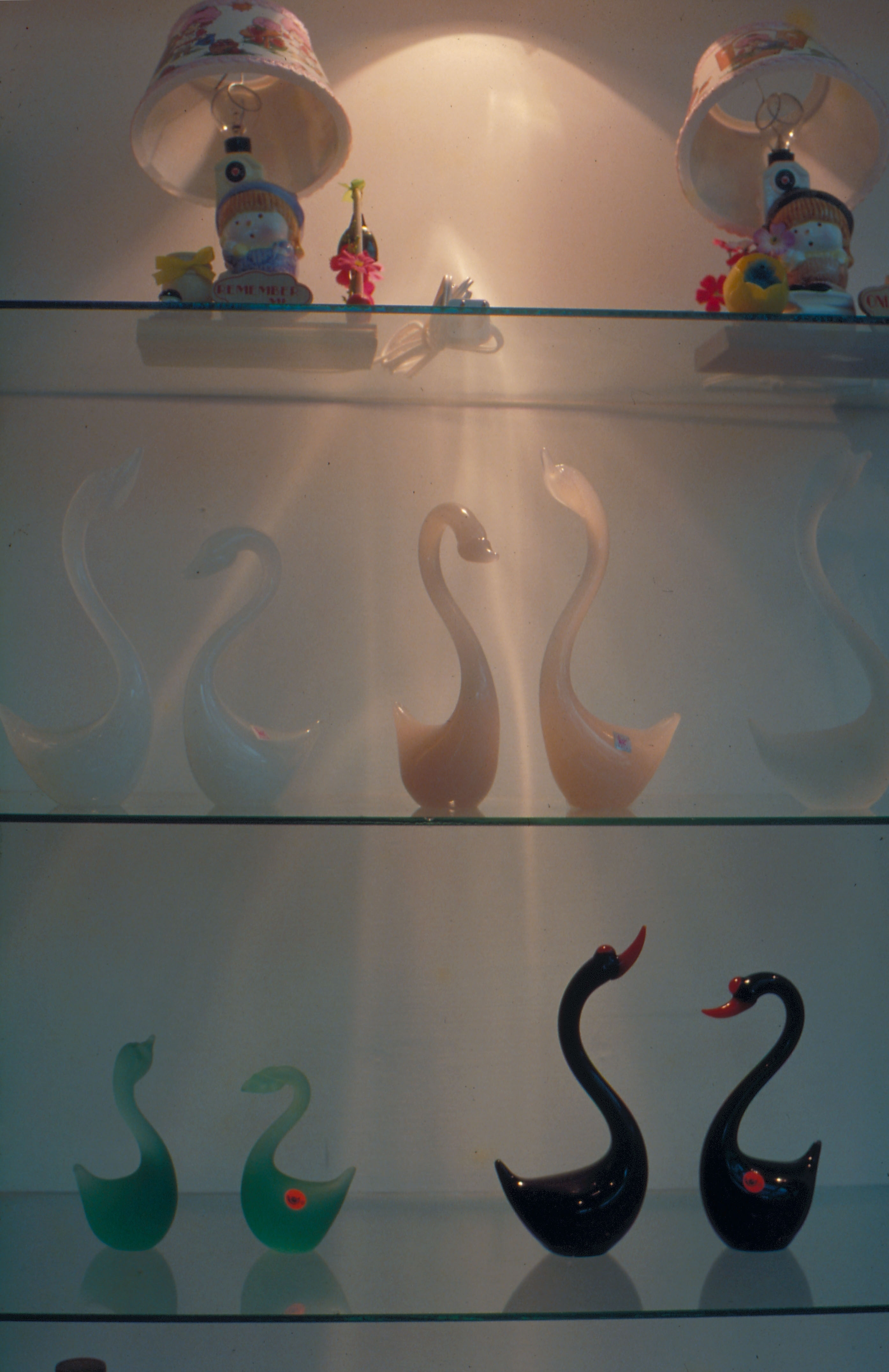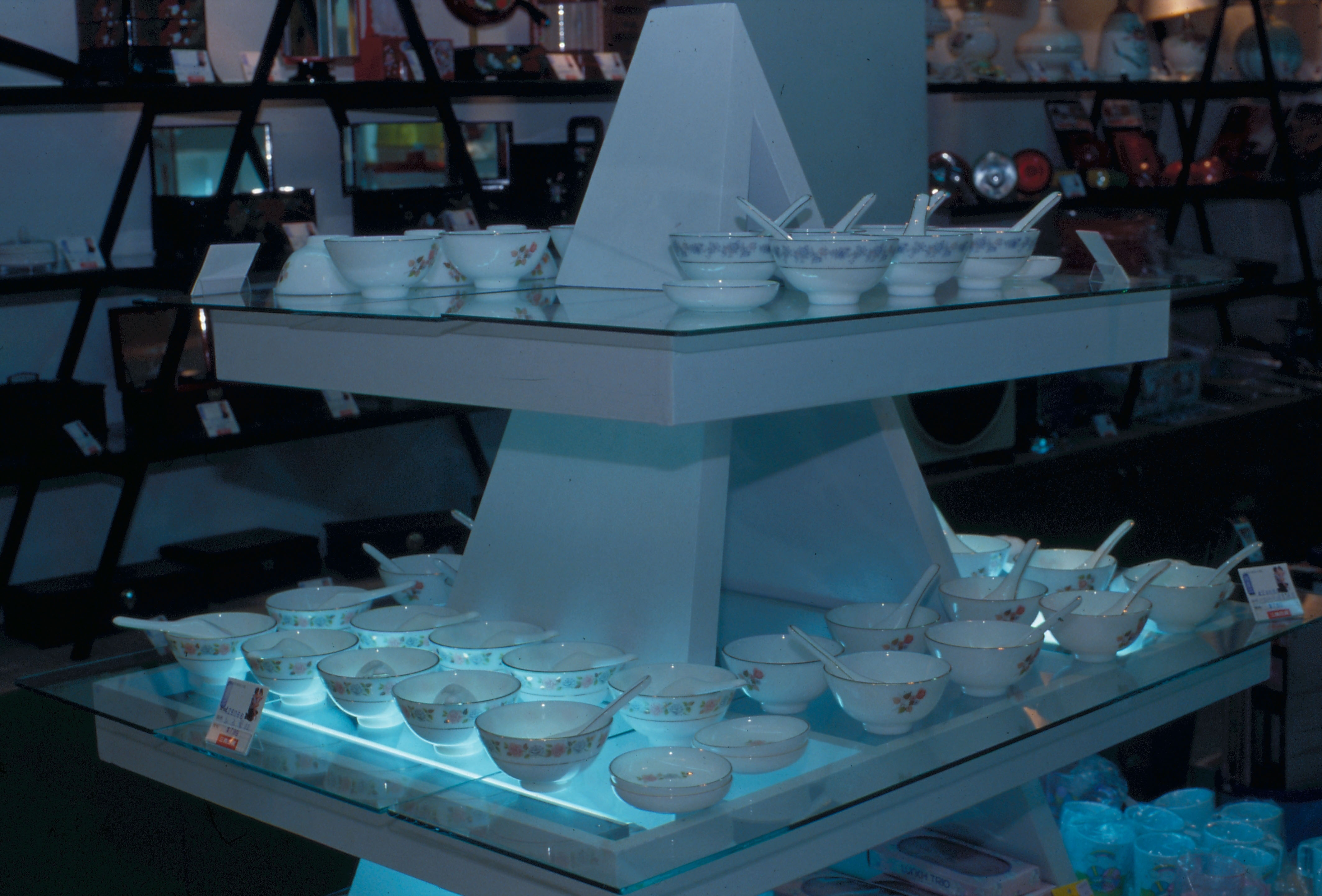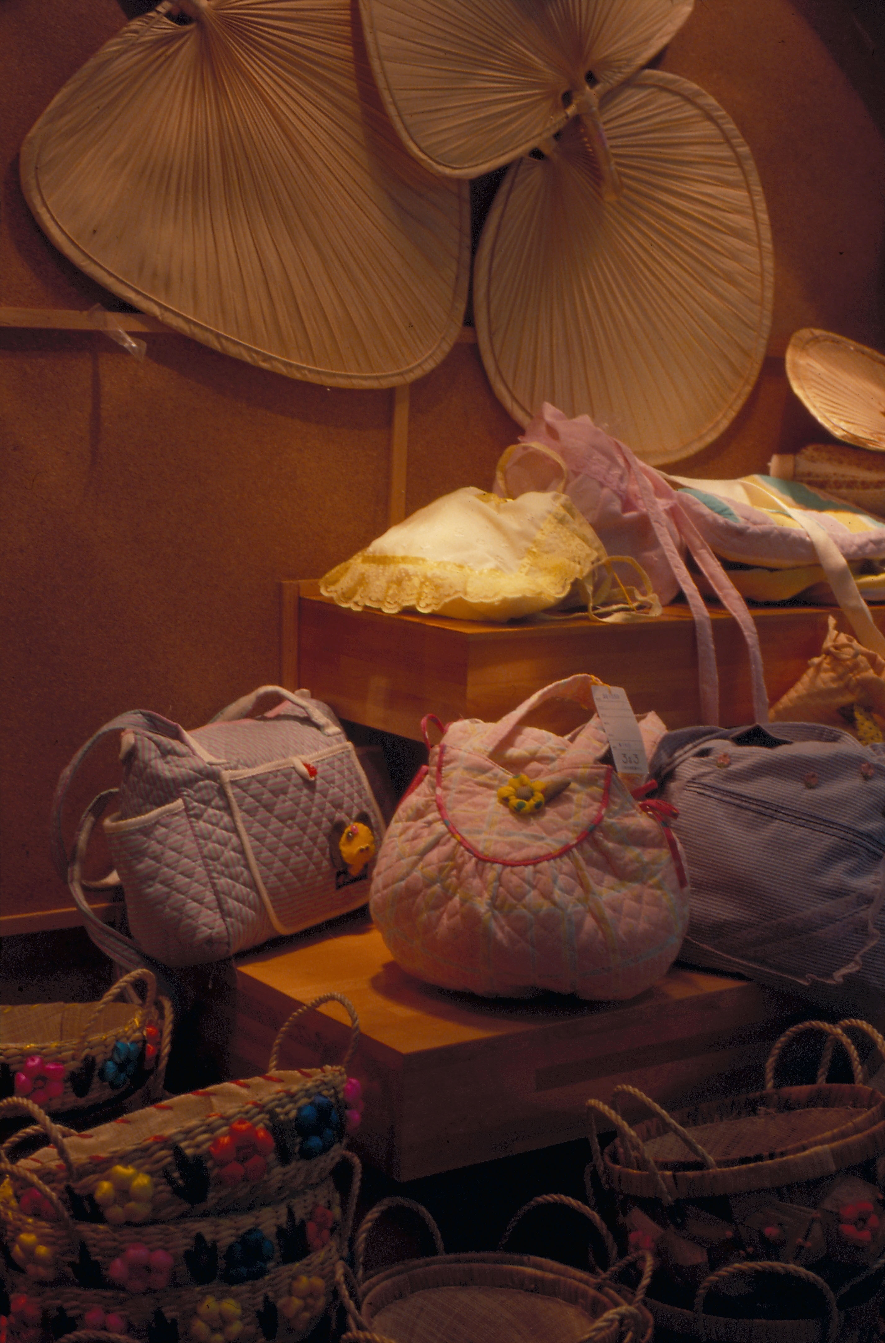 圖3.~9:三商採開架式陳列各類貨品,有提包、玩偶、衣物、娃娃、杯碗組具、玻璃天鵝、台燈……等。(鐘永和)