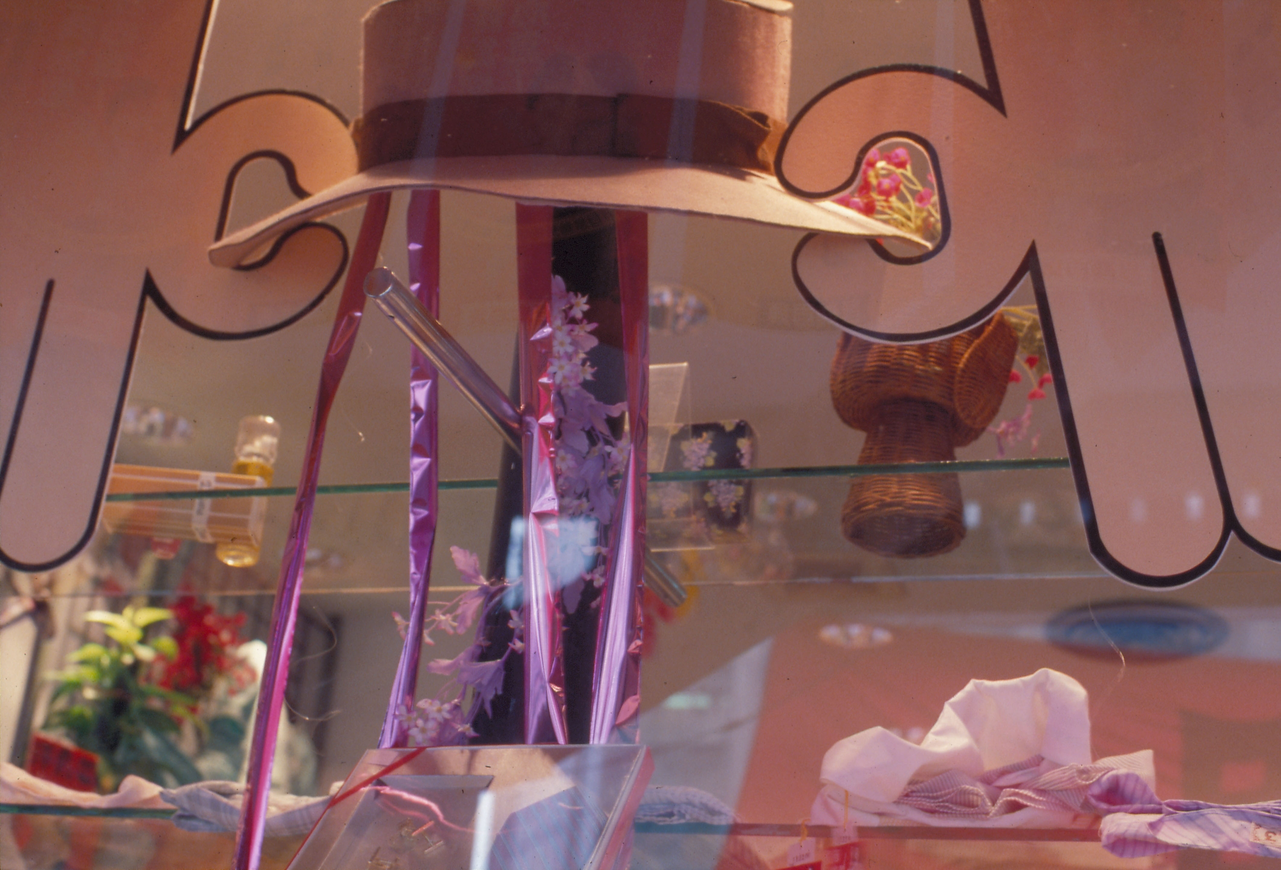 整片落地玻璃店面,是銀箭連鎖店一致的外觀,行人可清楚看到內部照片沖印機陸續吐出鮮明的照片,二、三位工作人員著繪有銀箭標幟——瞇眼、背箭、拿弓的小童——的衣服在機器旁操作。